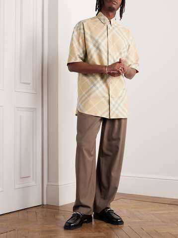 Button-Down Collar Logo-Embroidered Checked Cotton-Twill Shirt