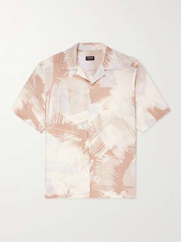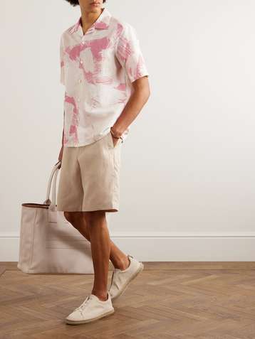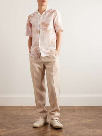 Convertible-Collar Printed Linen and Cotton-Blend Shirt