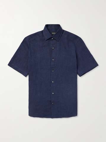 Convertible-Collar Printed Linen and Cotton-Blend Shirt