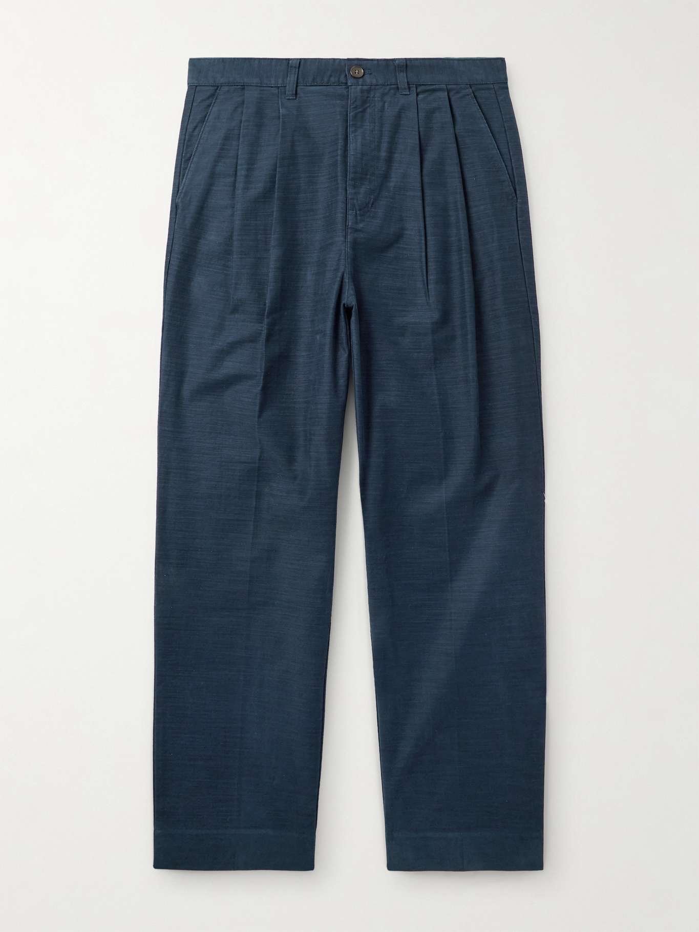 Aimé Leon Dore's trousers are tailored with double pleats to give a little more room in the seat. They're cut for a straight fit from smooth cotton-sateen dyed 'Sky Captain', the brand's take on deep, dark-blue.