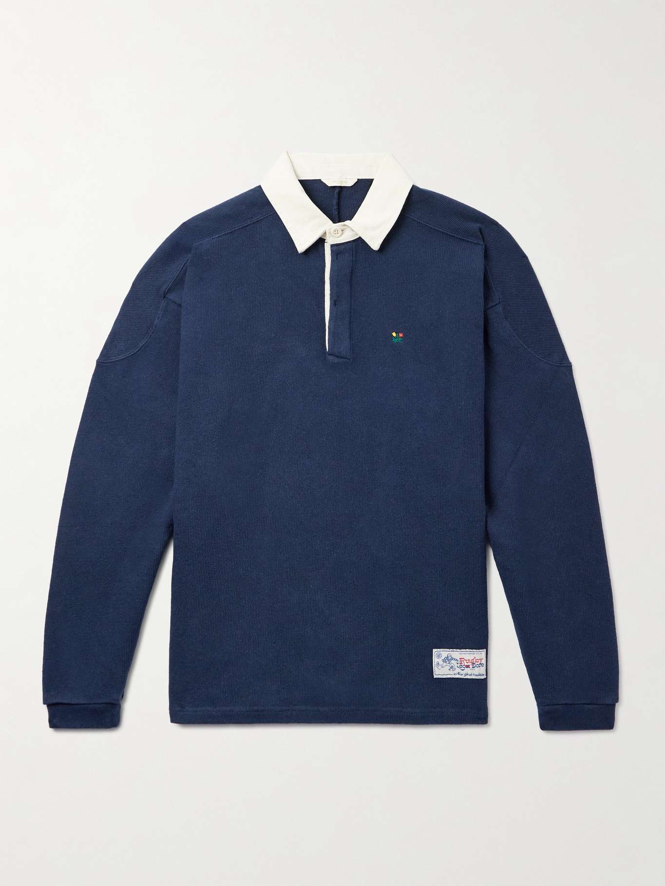 Aimé Leon Dore's polo shirt takes its cues from traditional rugby styles—note the appliqué near the hem. Trimmed with a twill collar for contrast, it's knitted from breathable cotton and embroidered with a signature floral motif at the chest.