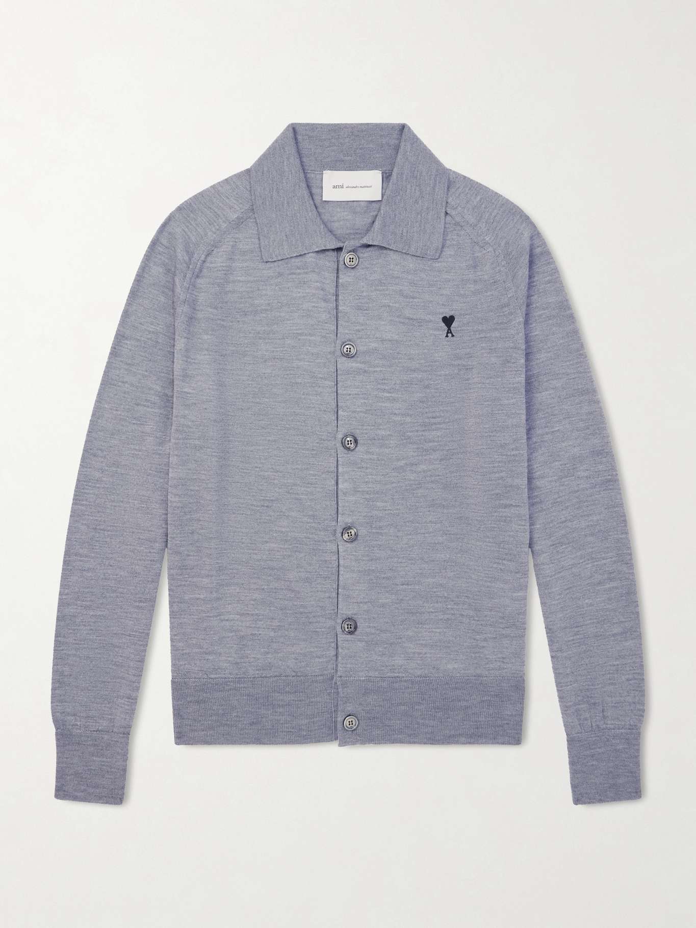Knitted from responsibly sourced merino wool, AMI PARIS's shirt cardigan has a soft handle and a clean, regular silhouette. It features black horn buttons and the signature ‘Ami de Coeur’ embroidery at the chest.