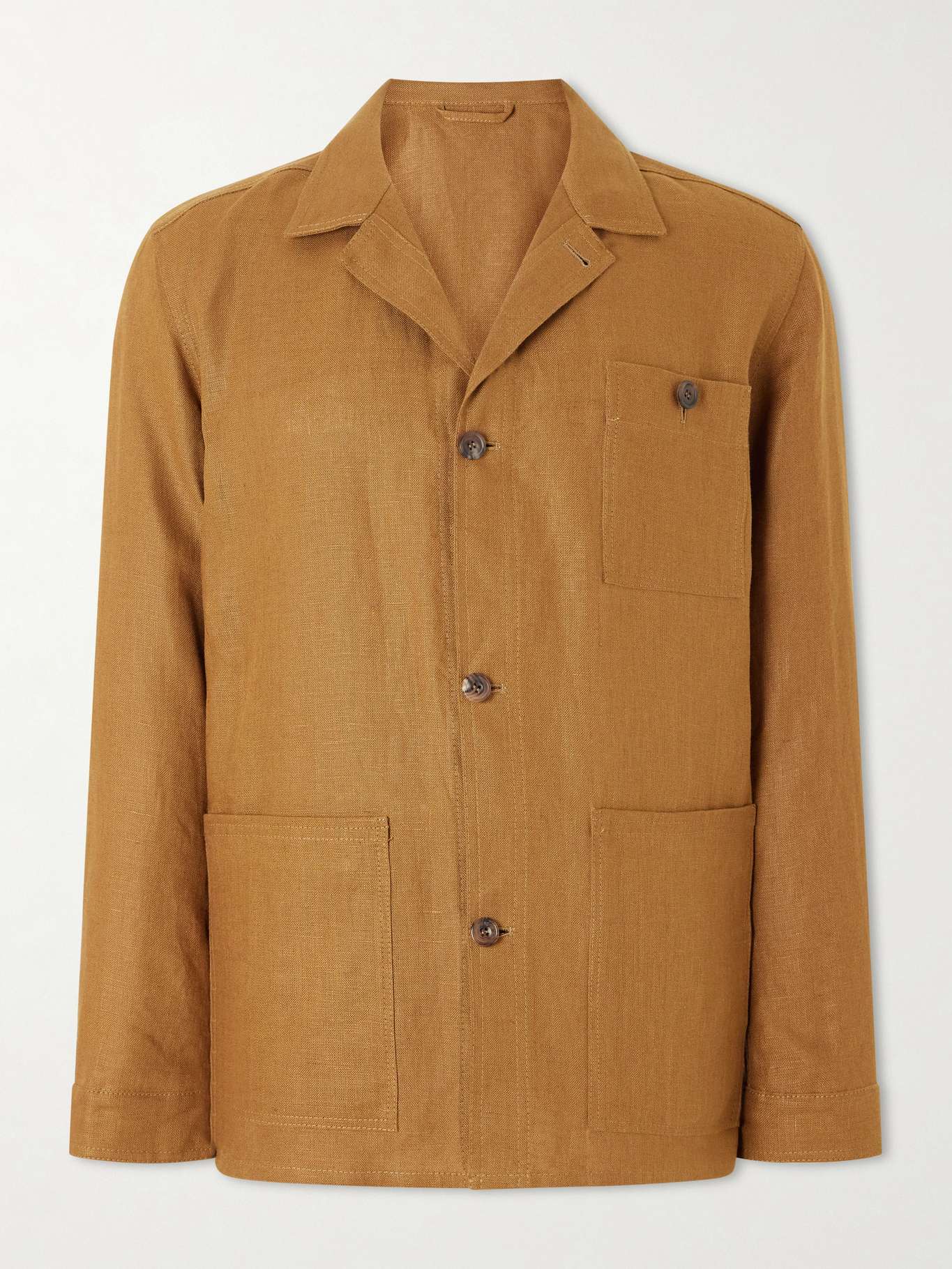 Drawing on French workwear, this Anderson & Sheppard's jacket is cut in Italy from linen in a clean, simple silhouette with a regular fit. It features a chest pocket, two deep front patch pockets and two internal zip pockets. A modern alternative to a summer blazer, it also works well into early autumn.