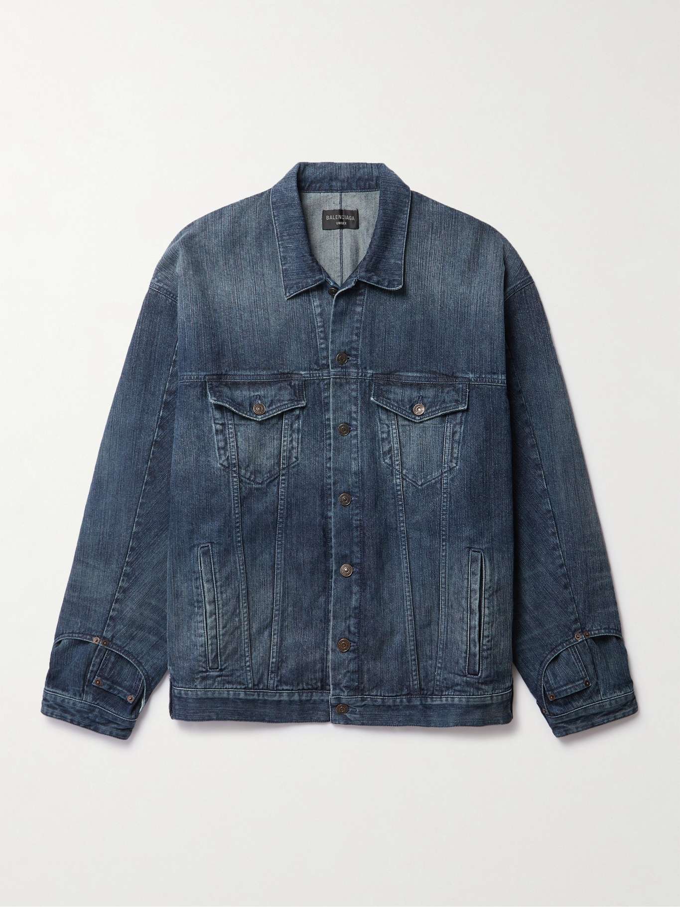 A close look (or a double-take) at Balenciaga's jacket, and you'll notice the sleeves and hem are constructed like the waistband of jeans. It's made from denim that's gently faded and has a longline profile that works well with the house's oversized trousers.