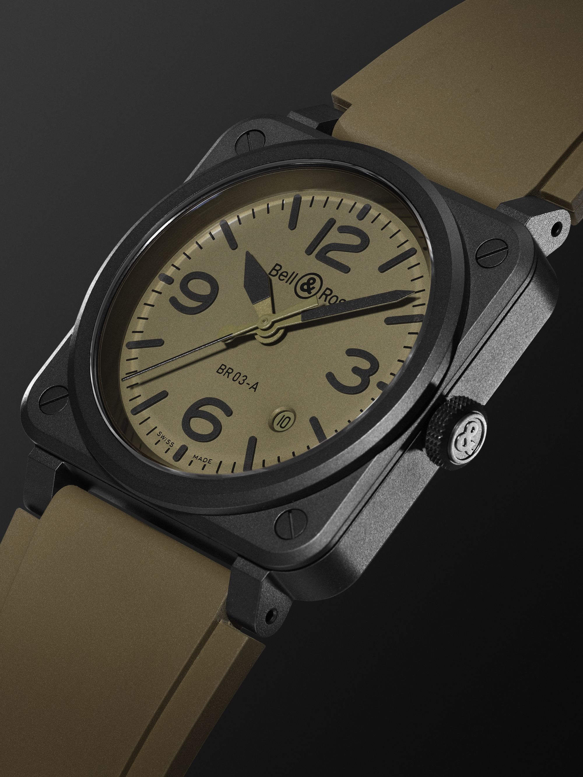 BELL & ROSS BR 03 Automatic 41mm Ceramic and Rubber Watch, Ref. No. BR03A-MIL-CE/SRB