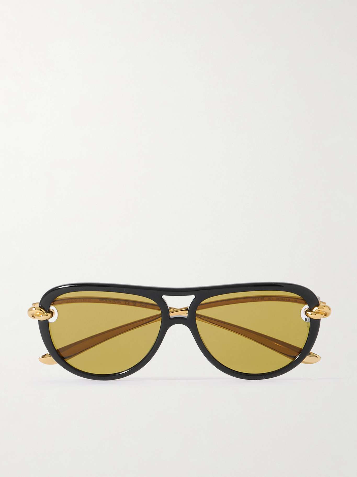 Bottega Veneta Eyewear's sunglasses are detailed with knots at the hinges that nod to its signature leatherware. They're made from contrasts of black acetate and gold-tone metal and have an aviator-style silhouette and a double nose bridge.