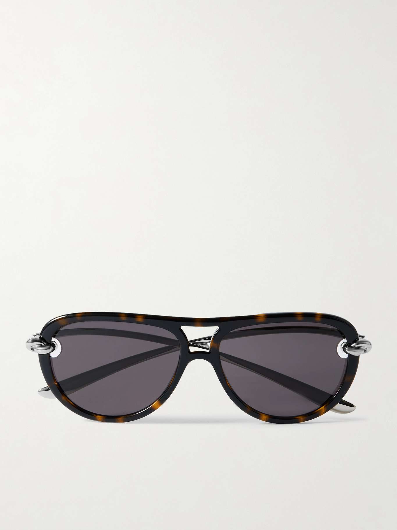 BOTTEGA VENETA EYEWEAR Aviator-Style Tortoiseshell Acetate and Silver-Tone Sunglasses