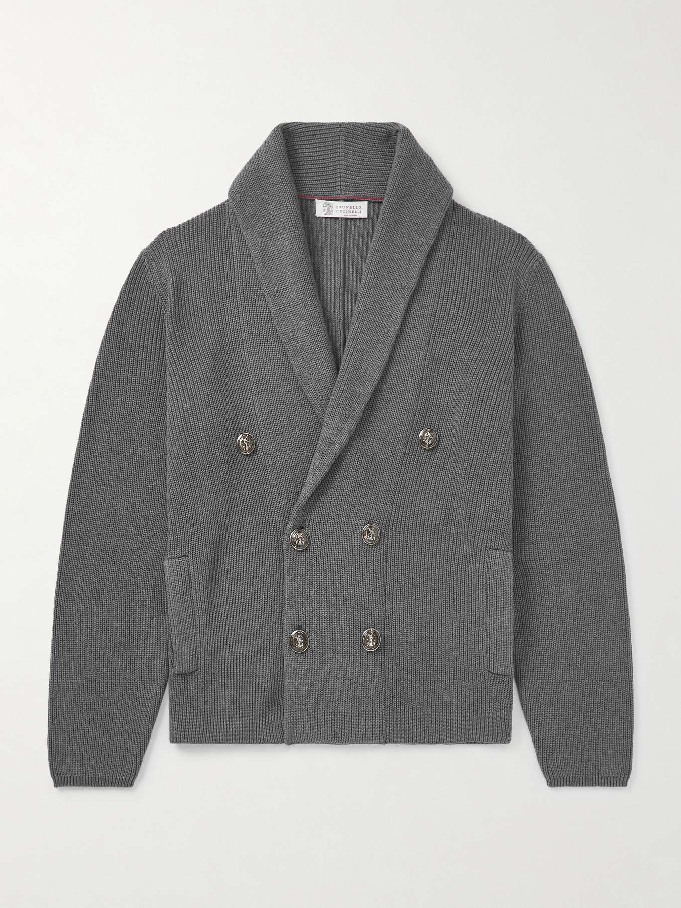 BRUNELLO CUCINELLI Shawl-Collar Double-Breasted Ribbed Cotton Cardigan