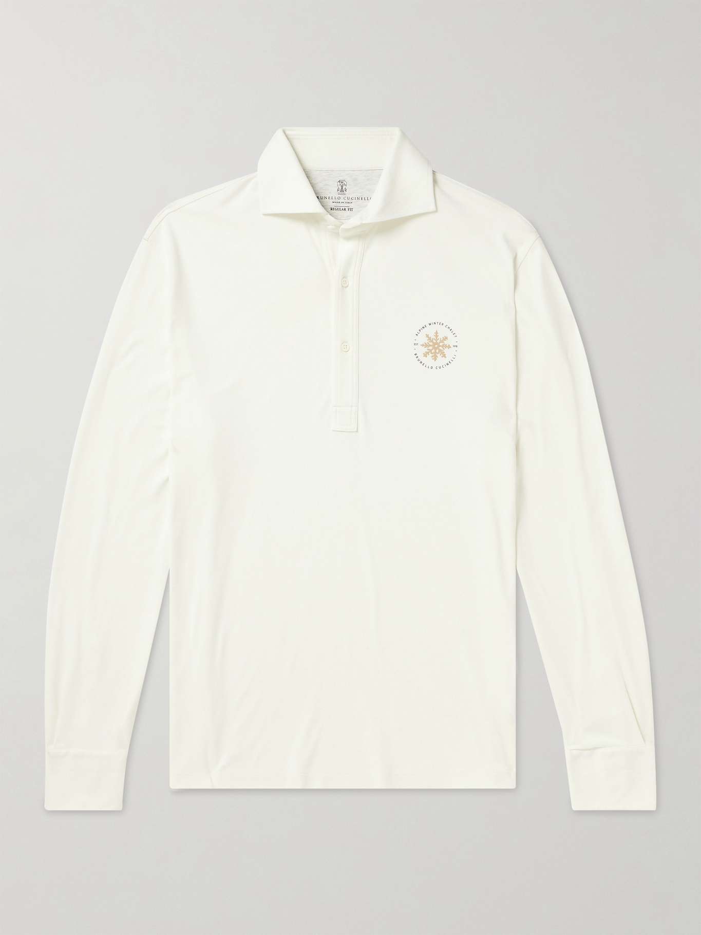 BRUNELLO CUCINELLI Snowflake Logo-Print Cotton and Silk-Blend Polo Shirt