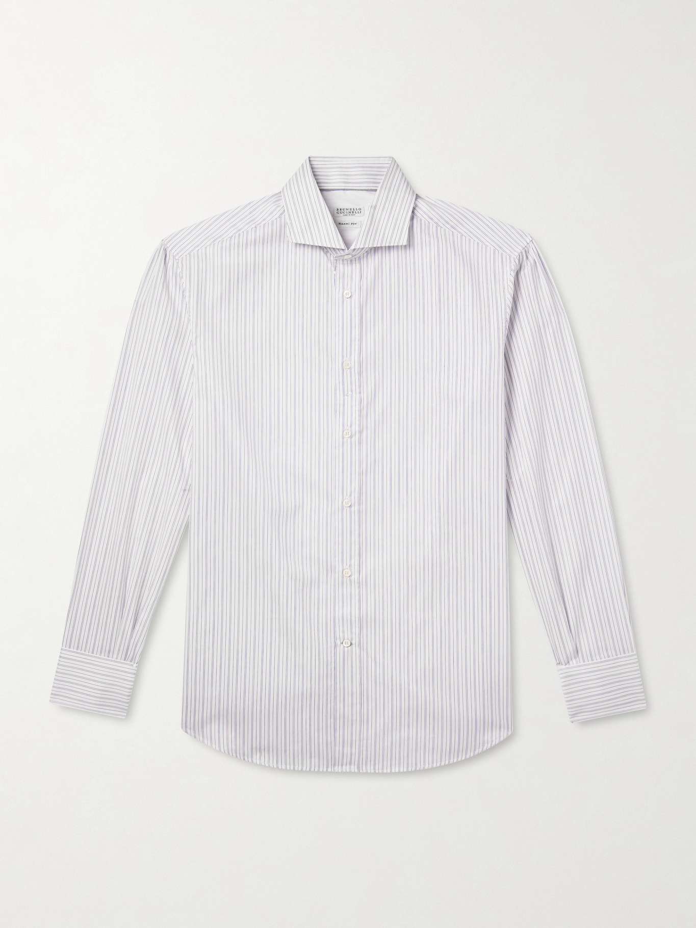 Brunello Cucinelli's shirt has you covered from boardroom meetings to post-work catch-ups. It's been tailored in Italy from crisp, striped cotton-poplin and has a cutaway collar to accommodate wide tie knots.