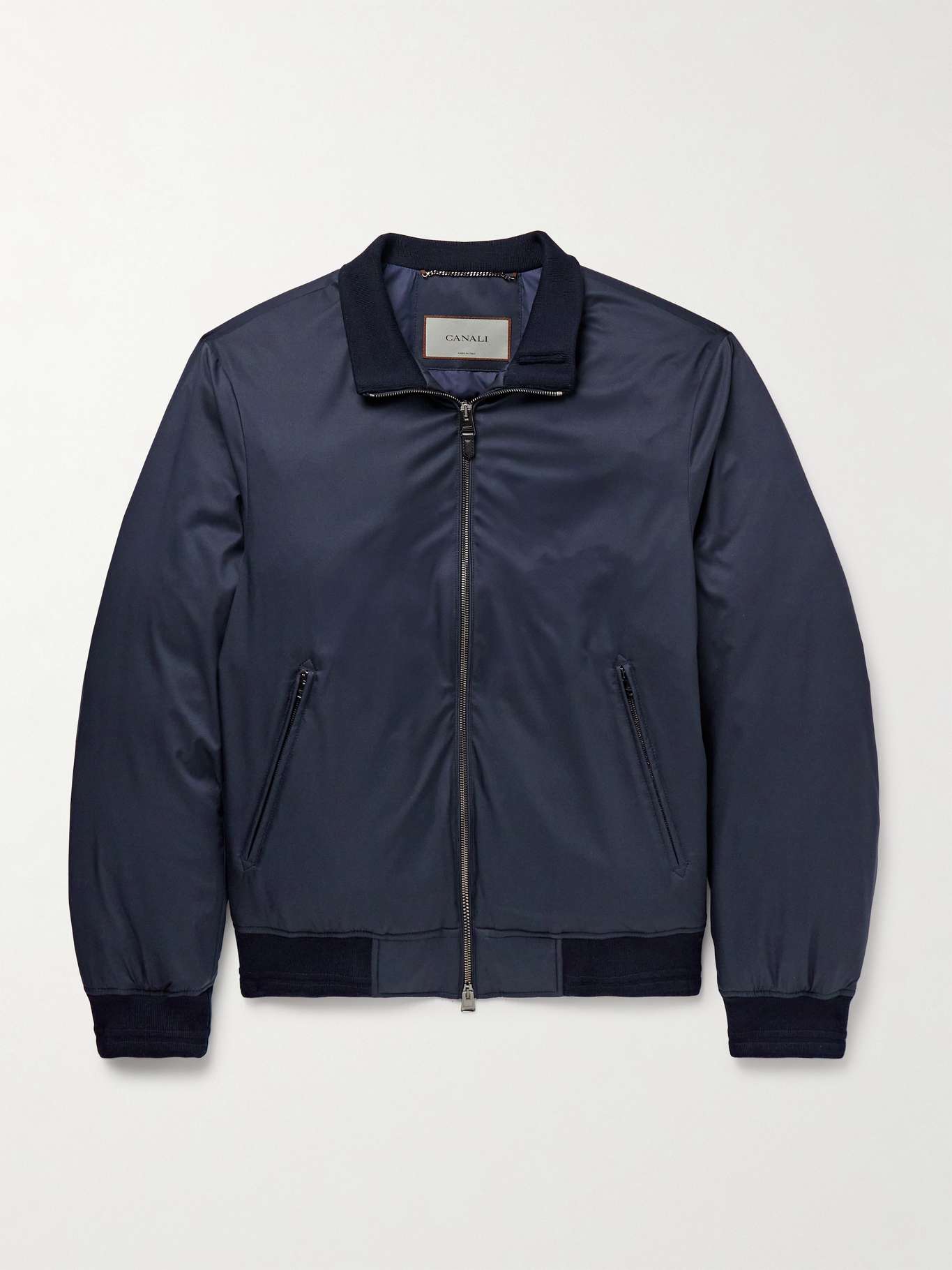 CANALI Leather-Trimmed Shell Down Bomber Jacket