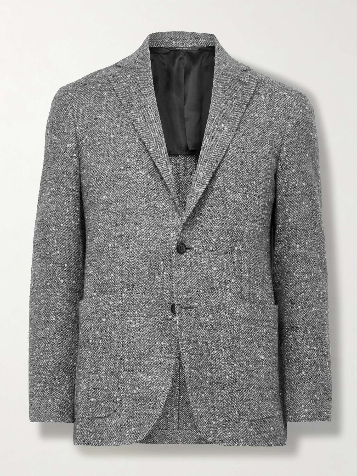 Canali's suiting is imbued with over 80 years of expertise. This blazer has been tailored in Italy on the label's signature 'Kei' block from a herringbone wool-blend — flecked like Donegal tweed — and is partially lined.