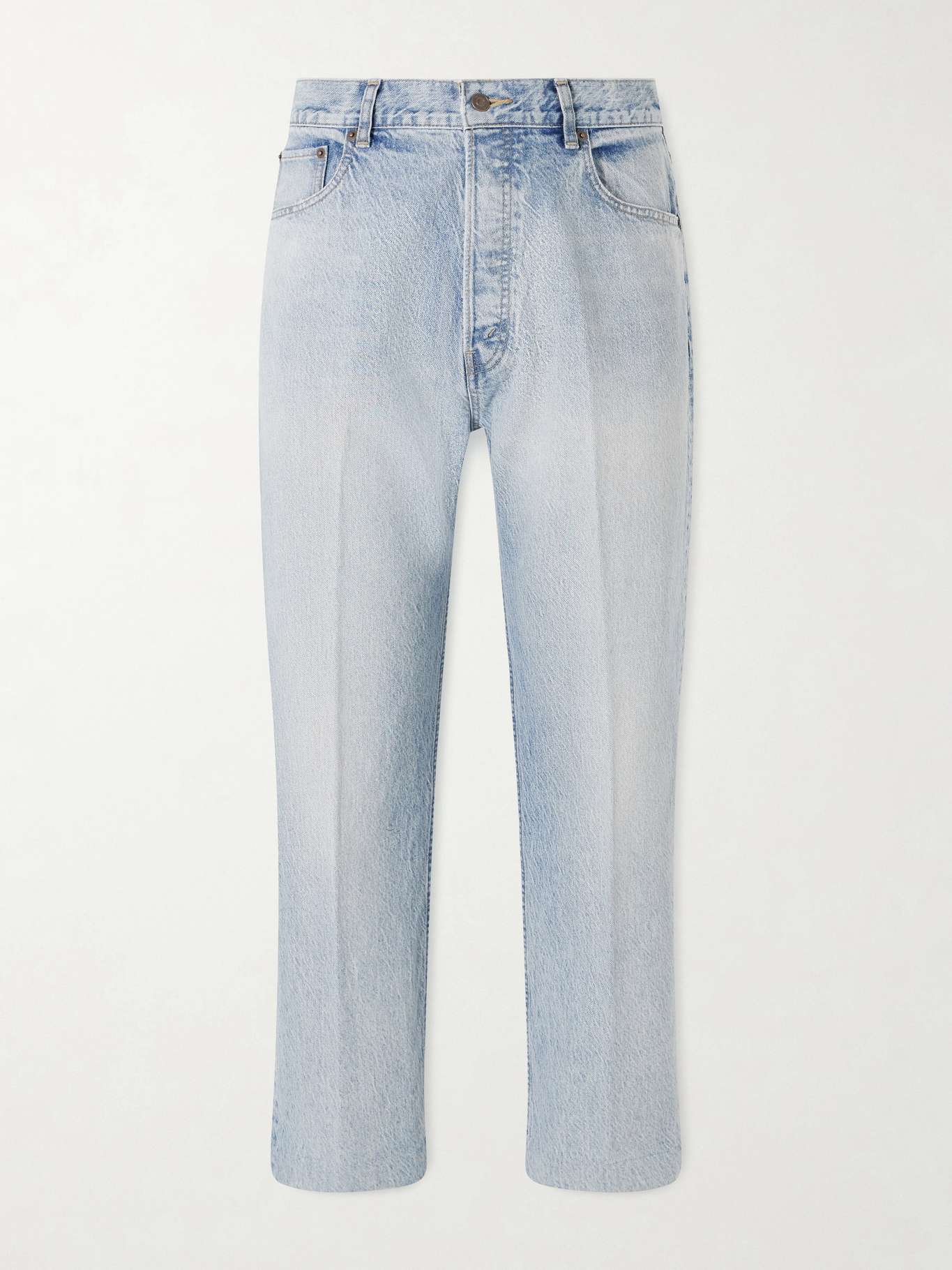 Made in Japan from cotton denim, CELINE’s mid-rise jeans are cut in a straight-leg silhouette with a vintage wash and pressed creases. Designed in a classic five-pocket construction, they feature a branded patch repositioned at the centre of the rear waistband—pair them with pointed boots for a sharp finish.
