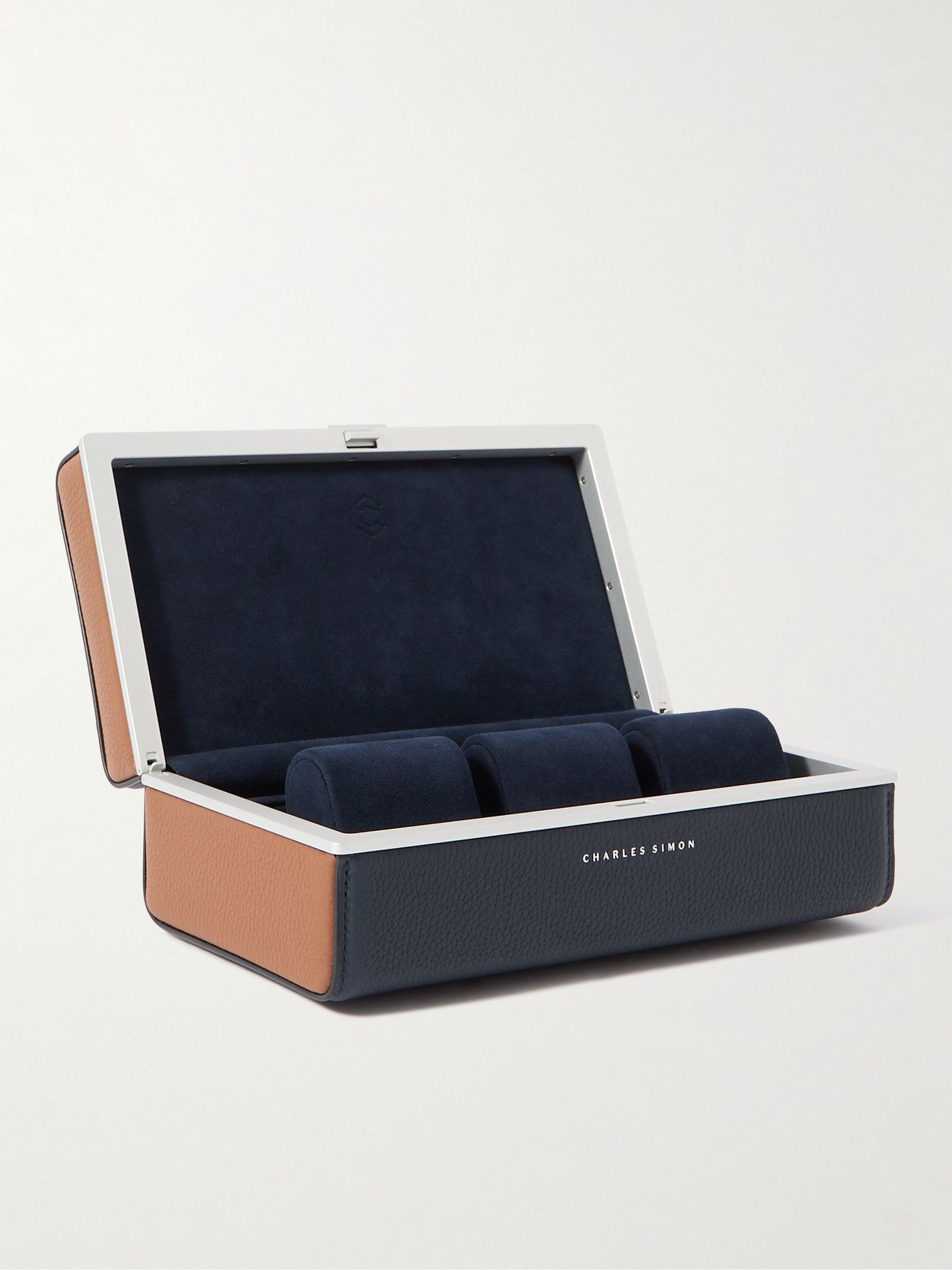 CHARLES SIMON Eaton Full-Grain Leather Three-Piece Travel Watch Case