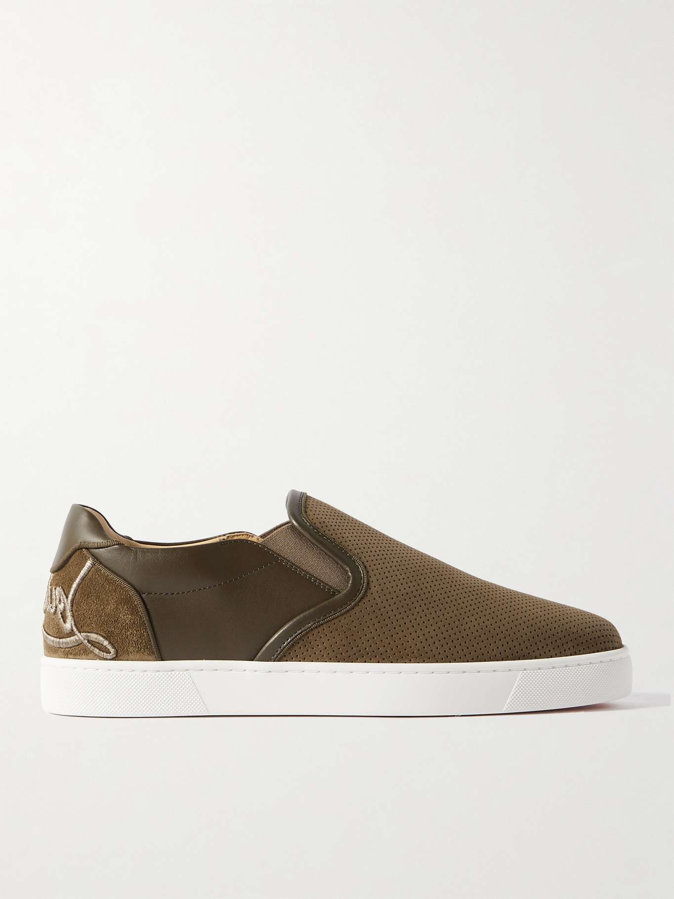 CHRISTIAN LOUBOUTIN Fun Sailor Leather-Trimmed Perforated Suede Slip-On Sneakers