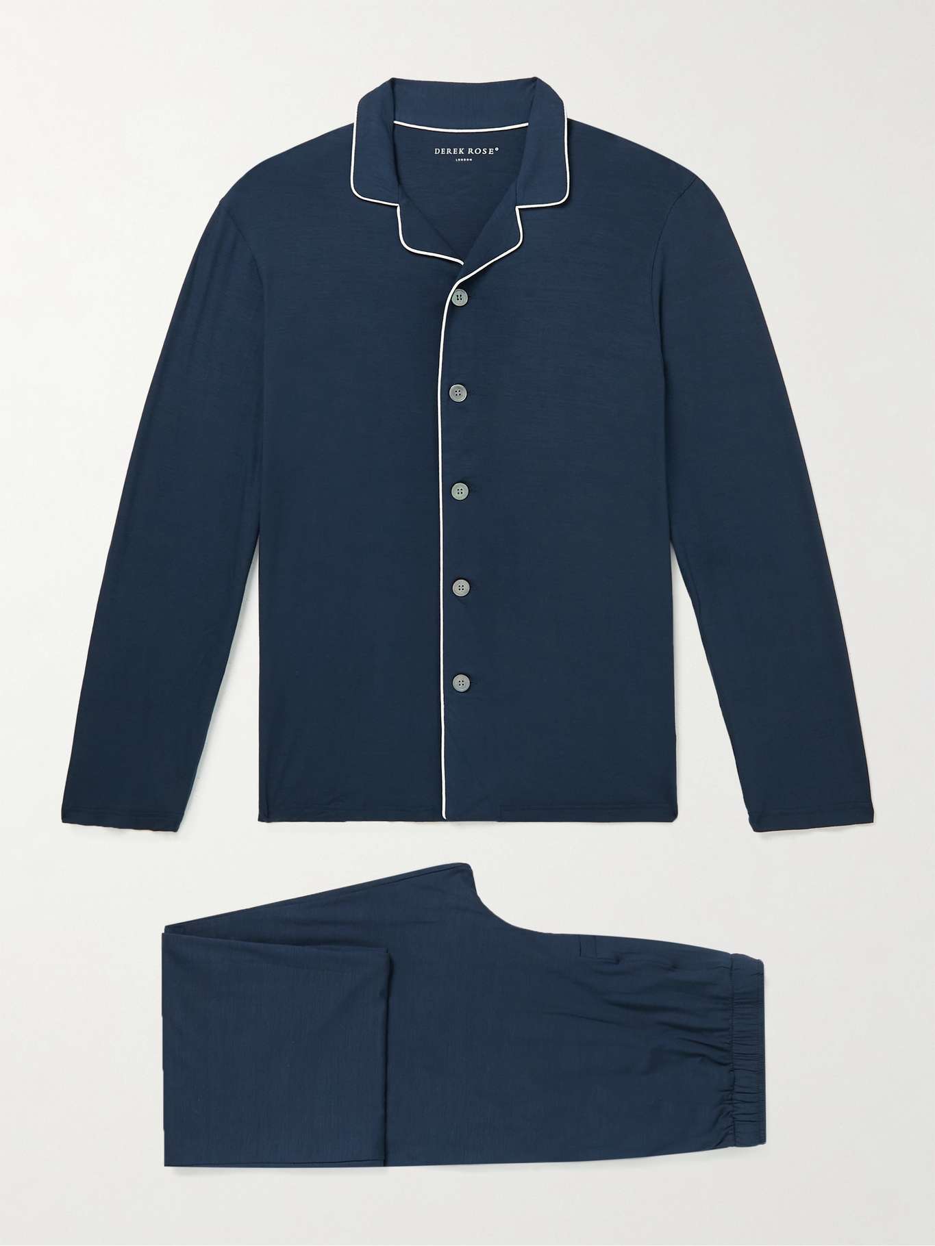 Derek Rose's pyjama set is made from stretch Micro Modal jersey - it boasts a myriad properties, from wrinkle-resistance to temperature regulation whether you're running hot or cold. Outlined with piping, the cut is a classic.