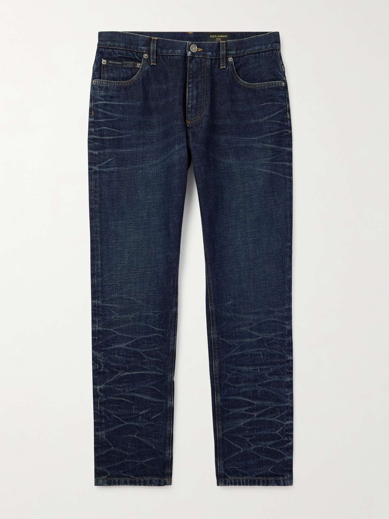 Dolce&Gabbana's jeans are whiskered and faded for a lived-in feel. They're made from dark-blue denim and cut for a relaxed straight-leg fit.