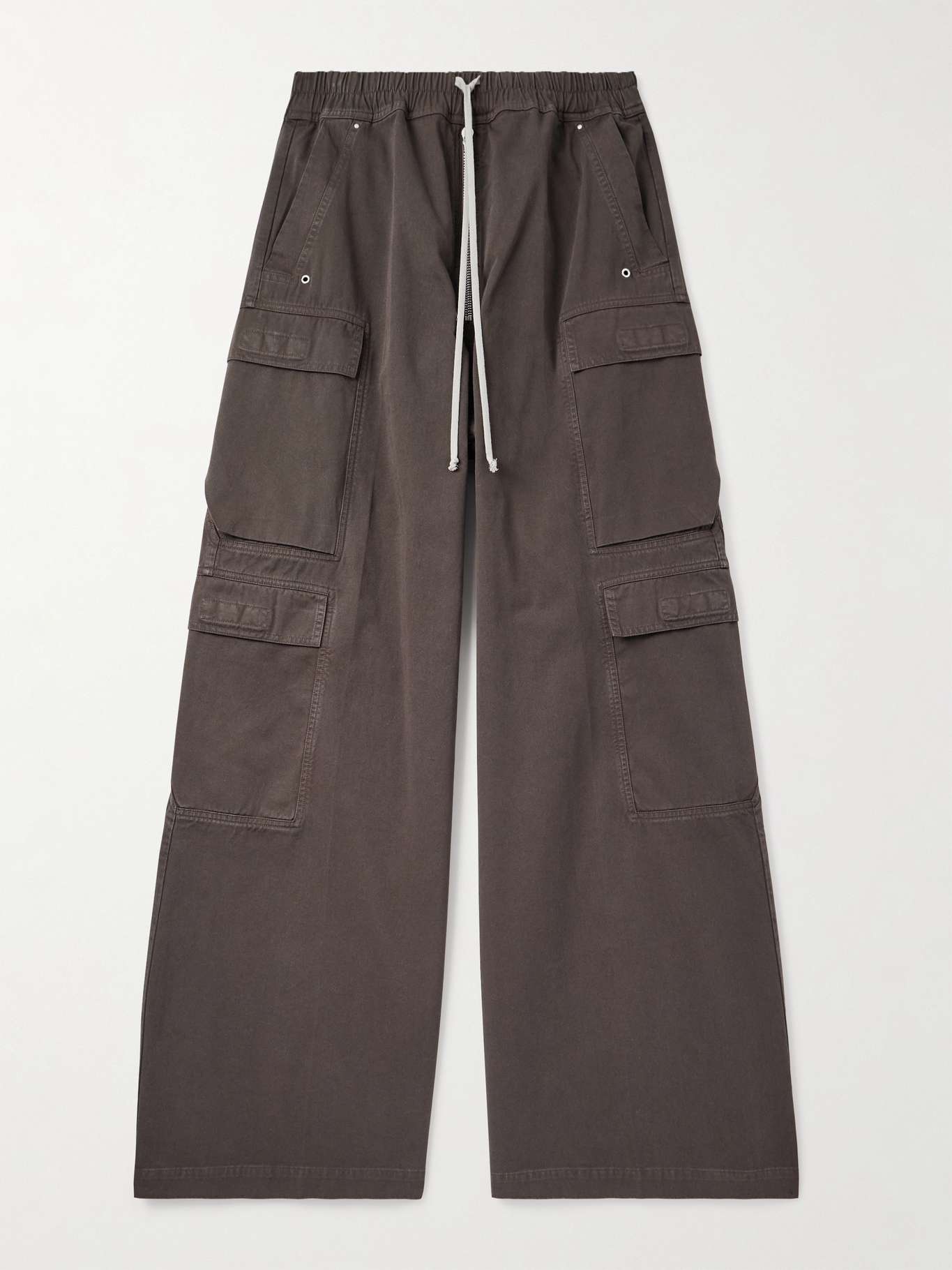 Rick Owens' DRKSHDW line offers a more minimal, laid-back take on the designer's distinctly grungy aesthetic. These trousers are cut from cotton with sweeping wide legs, detailed with silver-tone eyelets and cargo pockets. The extra-long drawstring is a brand signature.