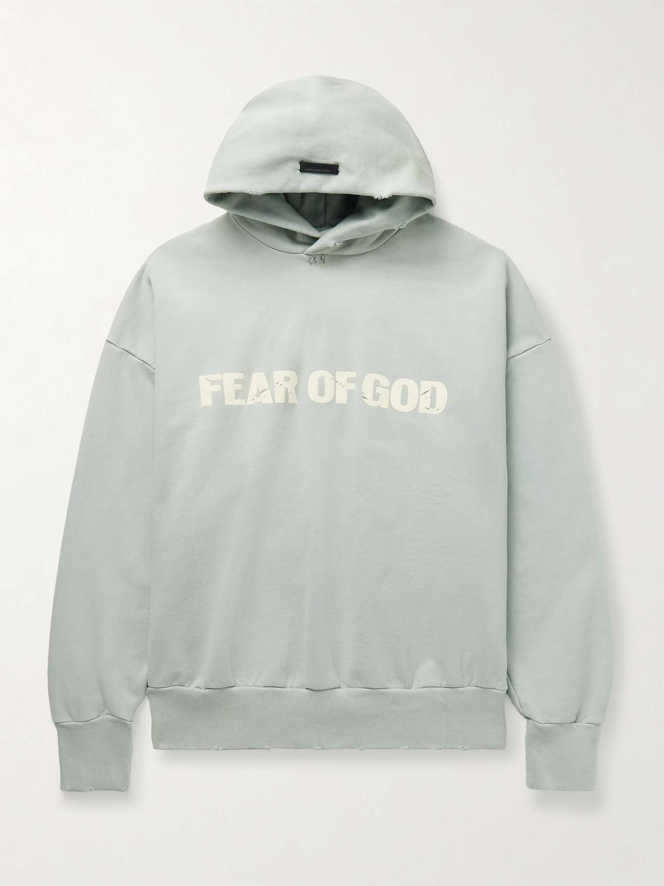 FEAR OF GOD Heaven Distressed Logo-Print Cotton-Jersey Hoodie