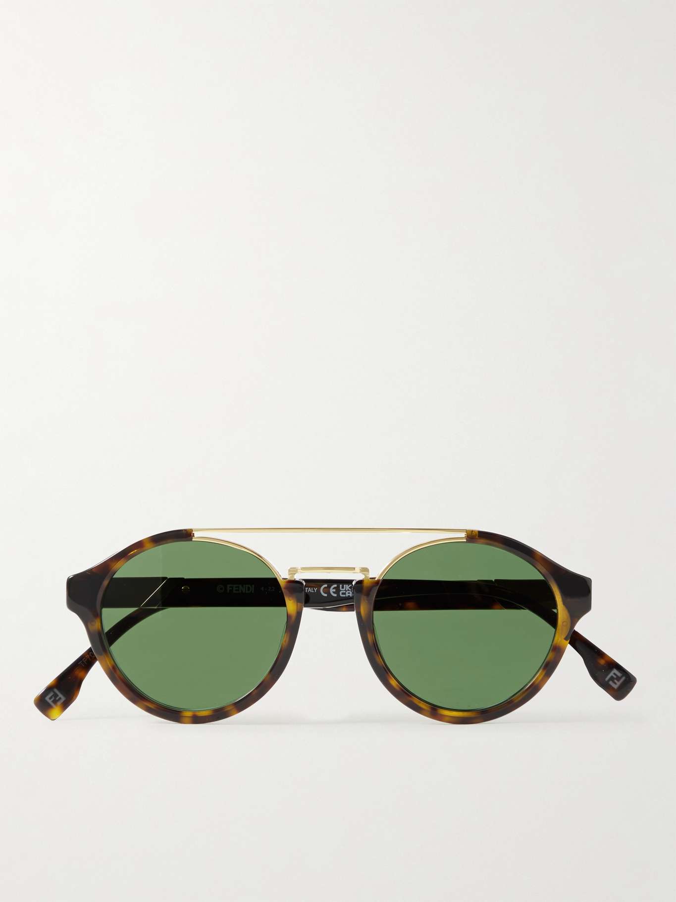 FENDI EYEWEAR Round-Frame Gold-Tone and Tortoiseshell Acetate Sunglasses