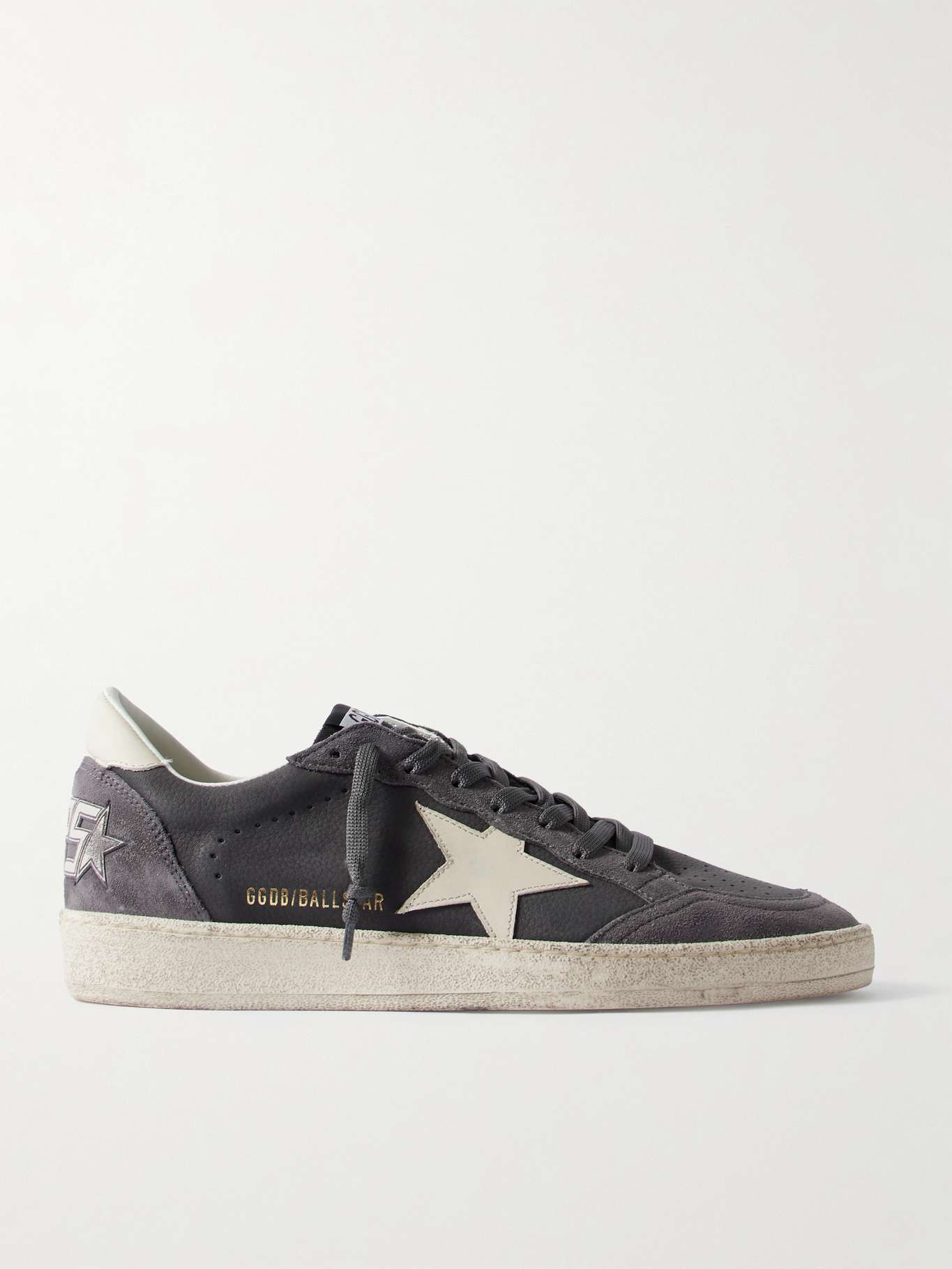 GOLDEN GOOSE Ball Star Distressed Suede-Trimmed Leather Sneakers