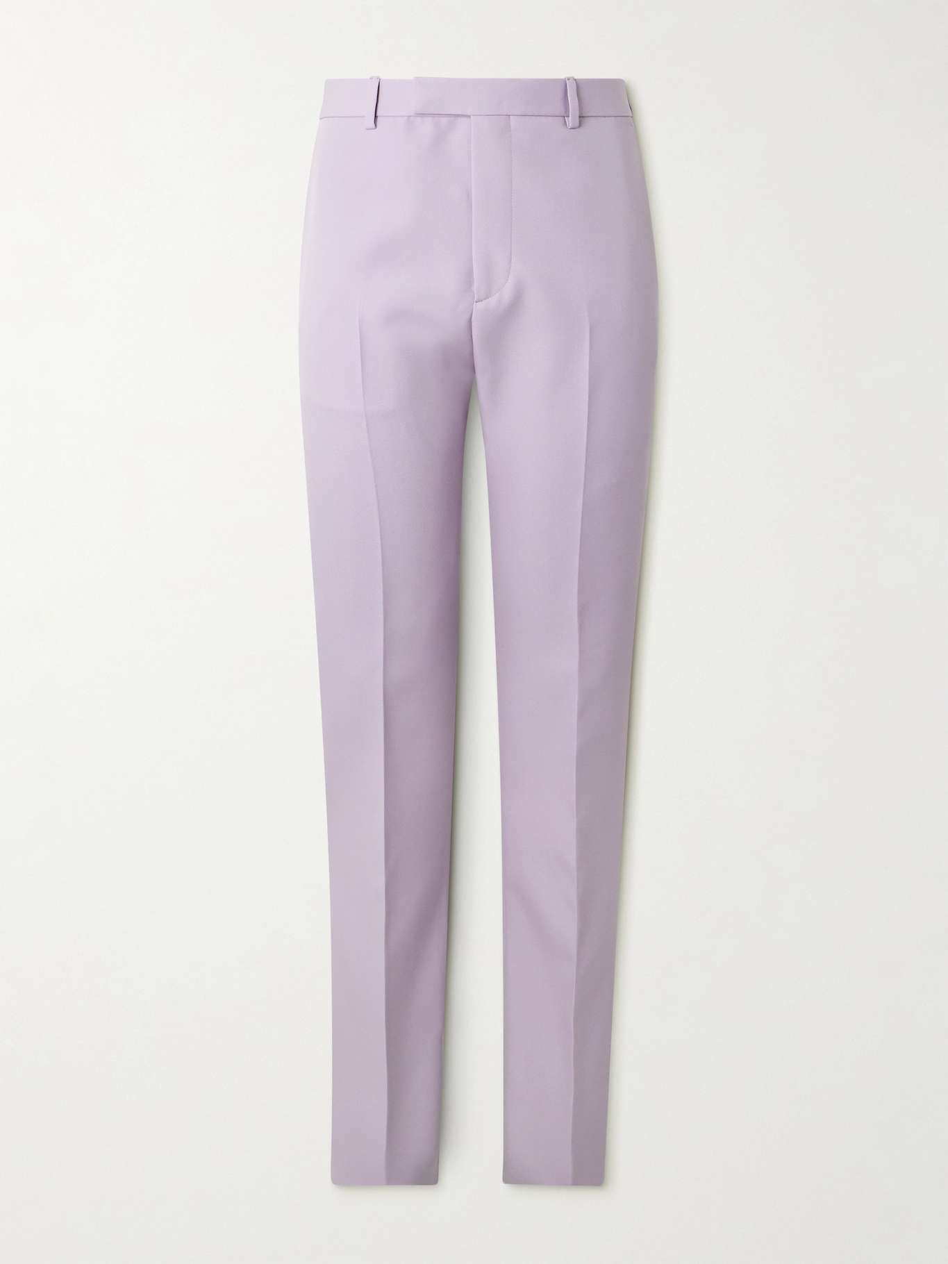 Gucci's trousers are neatly tailored from wool-gabardine in a refreshing lilac hue. They've been made in Italy and have a curtained waistband, split hems and a tonal embroidered logo at the back.