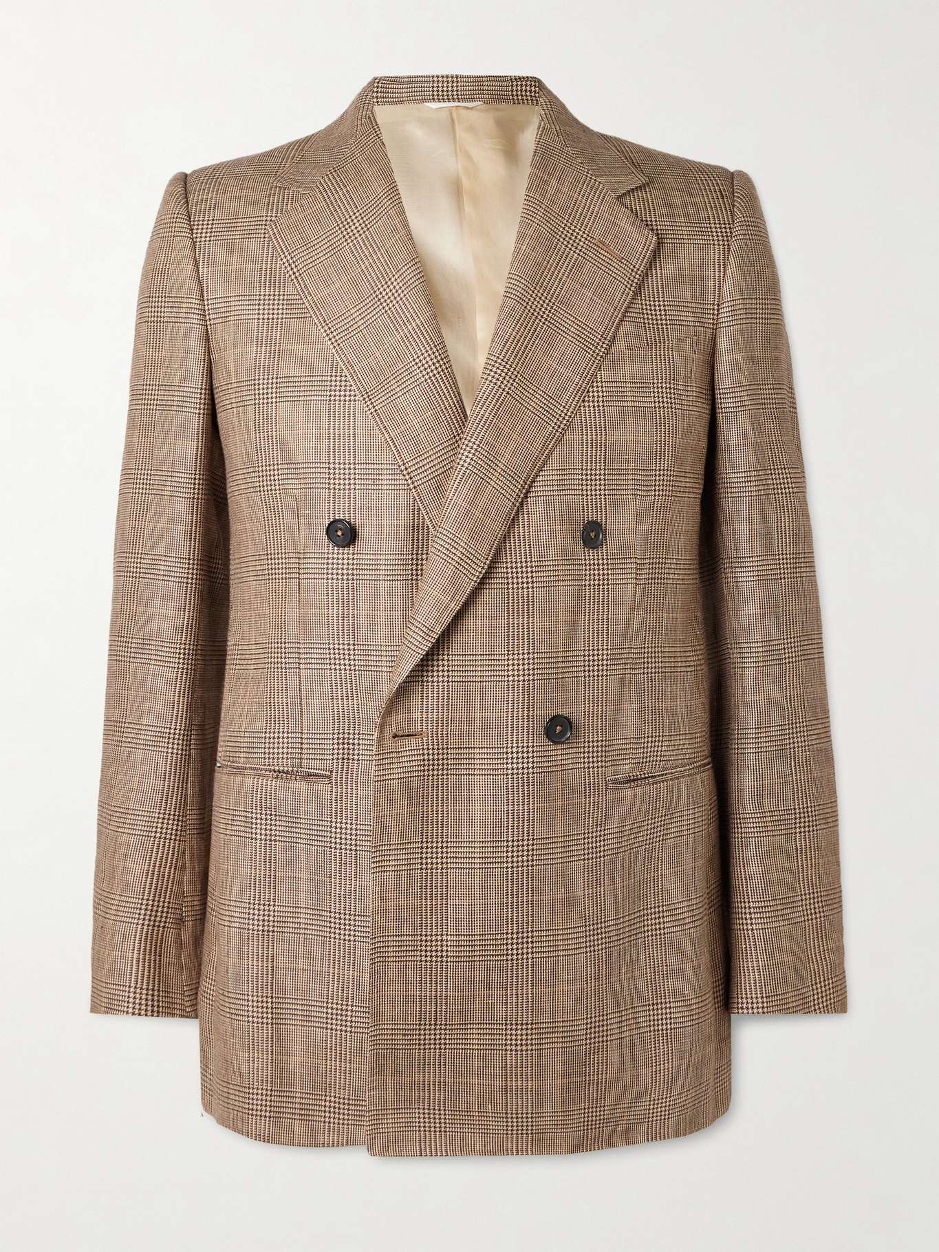 HUSBANDS Double-Breasted Prince of Wales Checked Worsted Wool and Linen-Blend Blazer