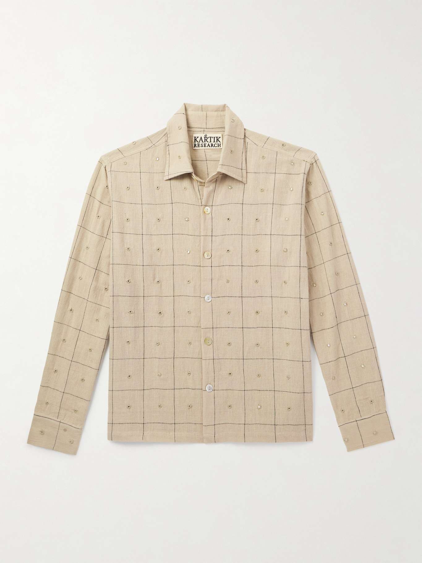 Kartik Research's collections spotlight time-honoured Indian craft, so each garment tells a story. This 'Box' shirt is made from breathable checked cotton that's hand-embroidered and embellished. It has a classic collar and fastens with polished mother-of-pearl buttons.