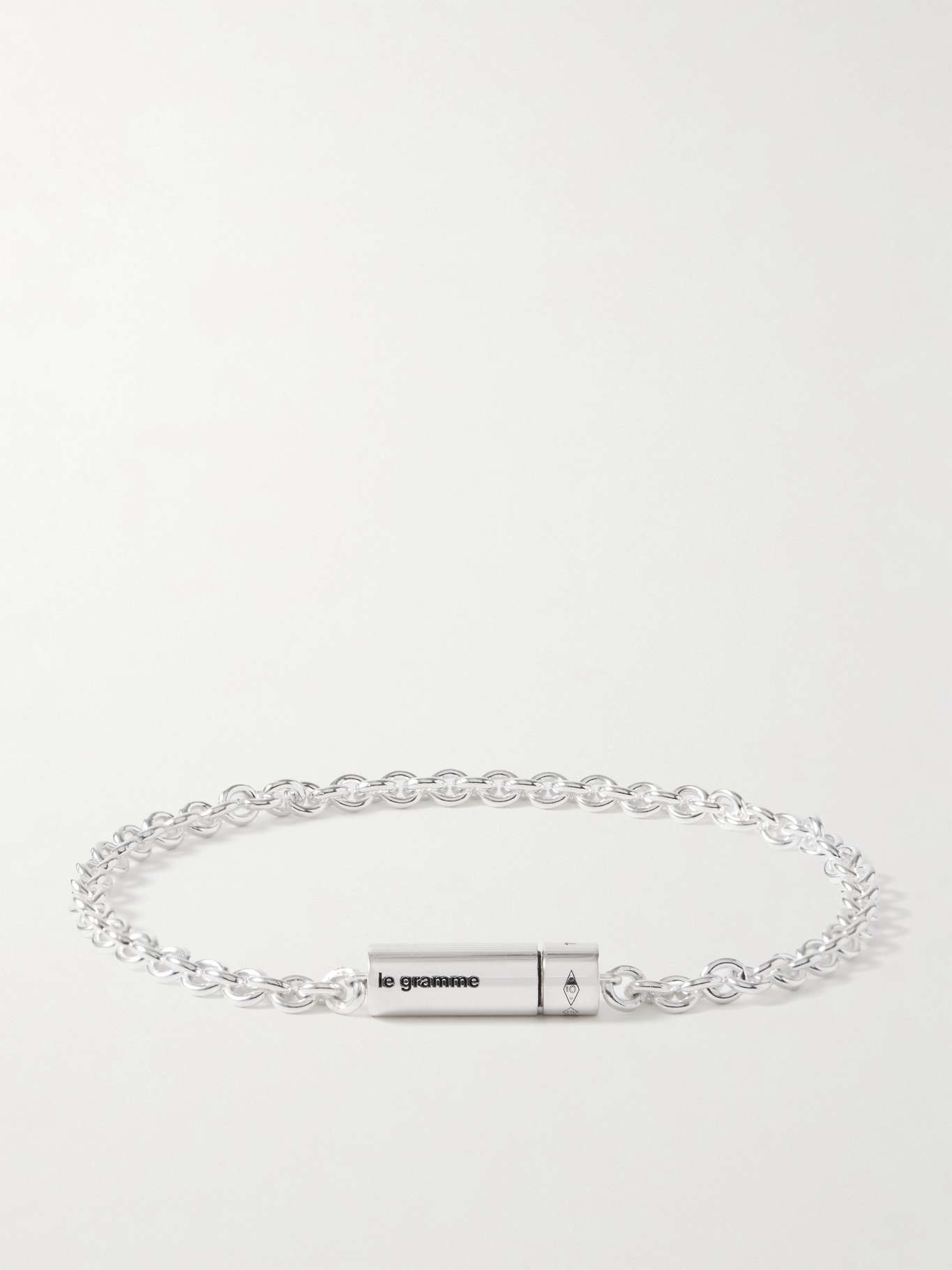 Each piece of Le Gramme's jewellery is engraved its metric weight - this one in particular is '11g'. It's crafted from recyled sterling silver and centred with a cylindrical clasp.