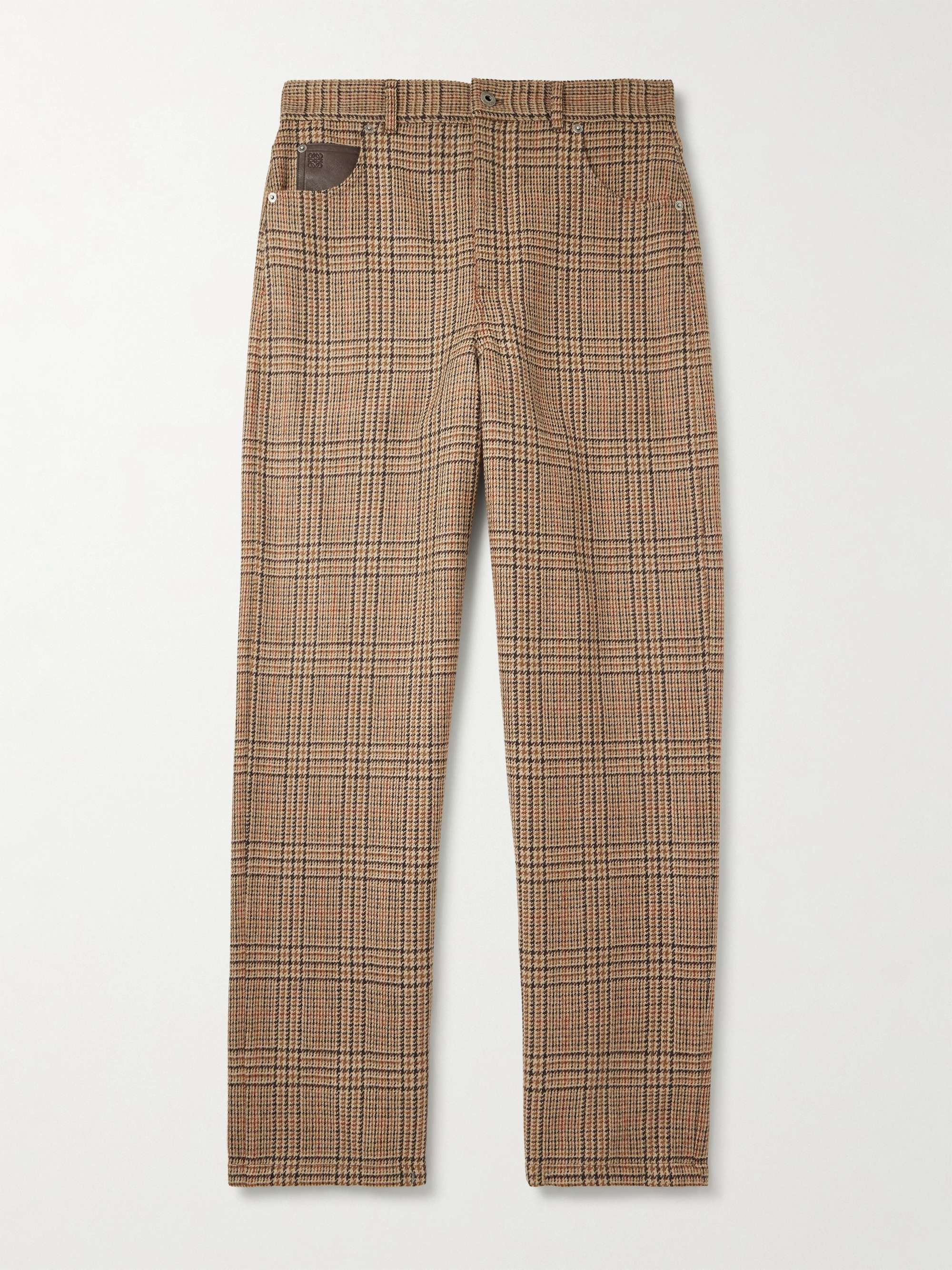 LOEWE Leather-Trimmed Prince of Wales Checked Wool Trousers
