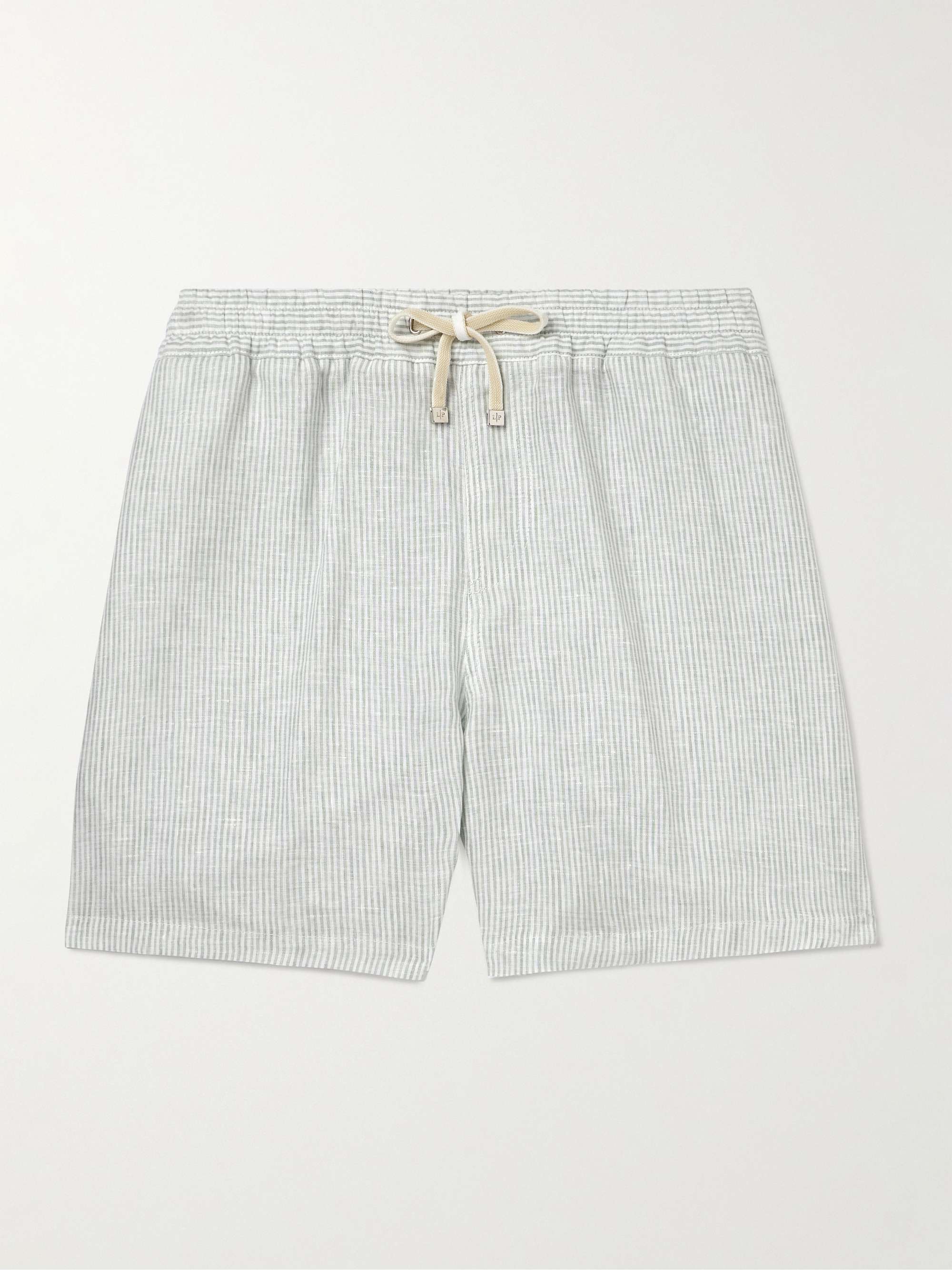 LORO PIANA Straight-Leg Striped Linen Drawstring Shorts