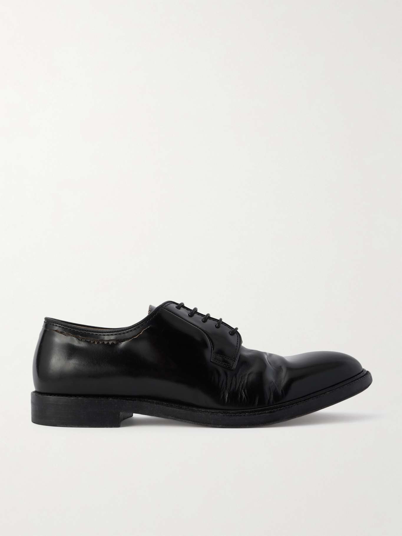 Maison Margiela's 'Love to Death' Derby shoes are thoroughly distressed to evoke the look of a cherished pair. They've been made in Italy from black leather and have pinked tongues that match the cutouts.
