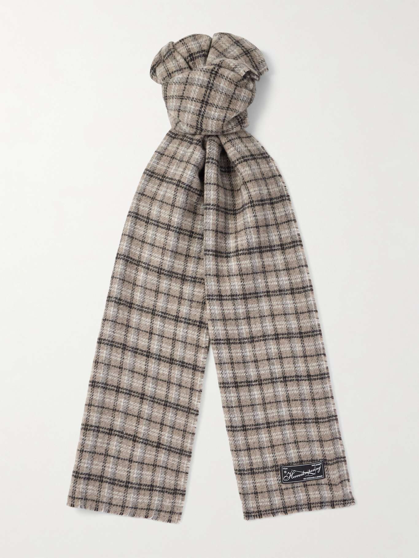 mfpen's scarf is knitted with light and dark checks on either side, so it'll work with most of your existing wardrobe. It's been made in Italy from a soft double-faced wool-blend and is appliquéd with a signature 'Herreekvippering' label.