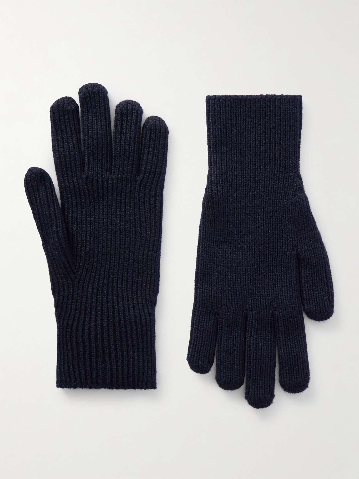 MONCLER Logo-Appliquéd Ribbed Virgin Wool Gloves
