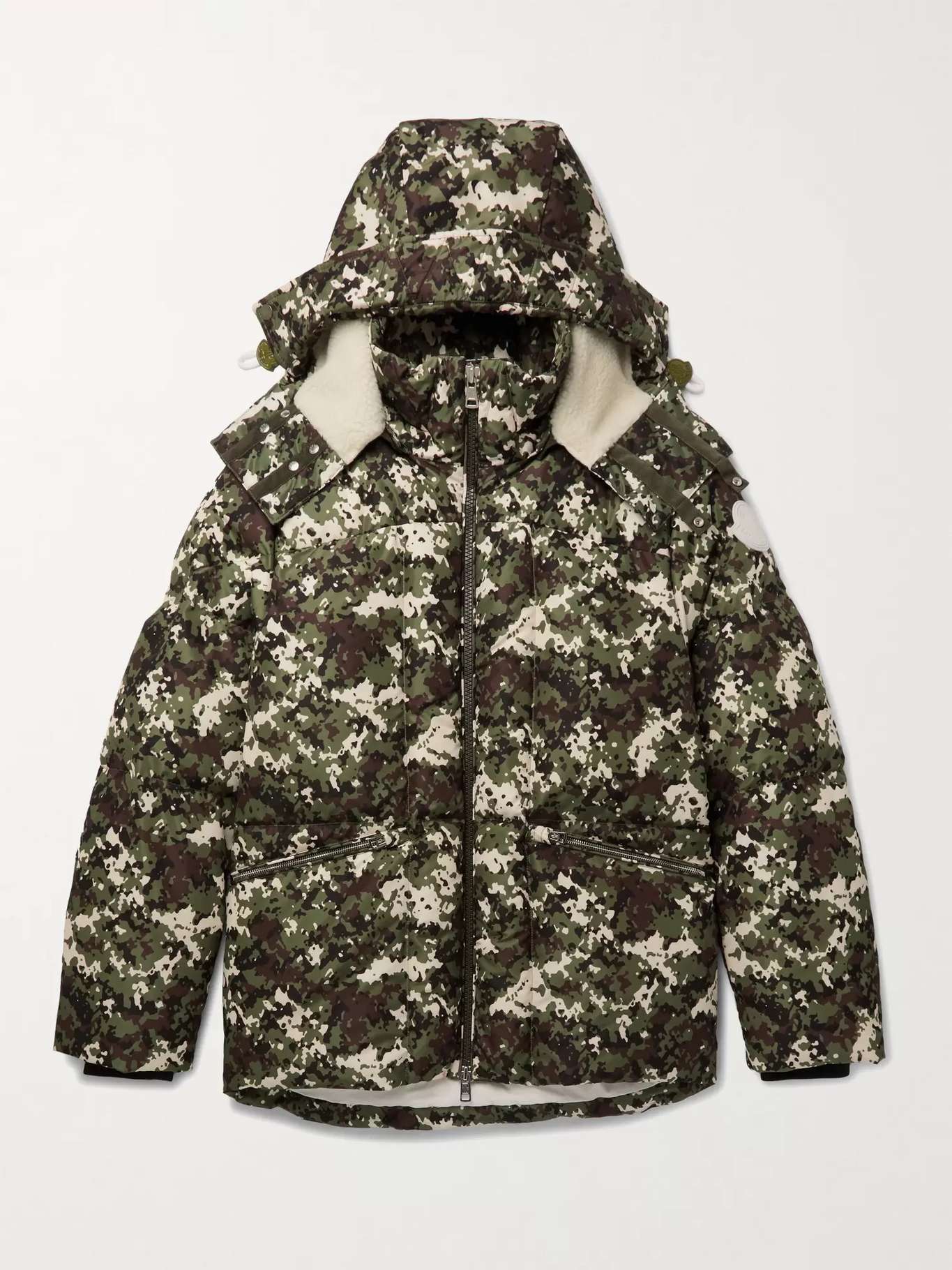 MONCLER Faux Shearling-Trimmed Quilted Camouflage-Print Shell Hooded Down Jacket