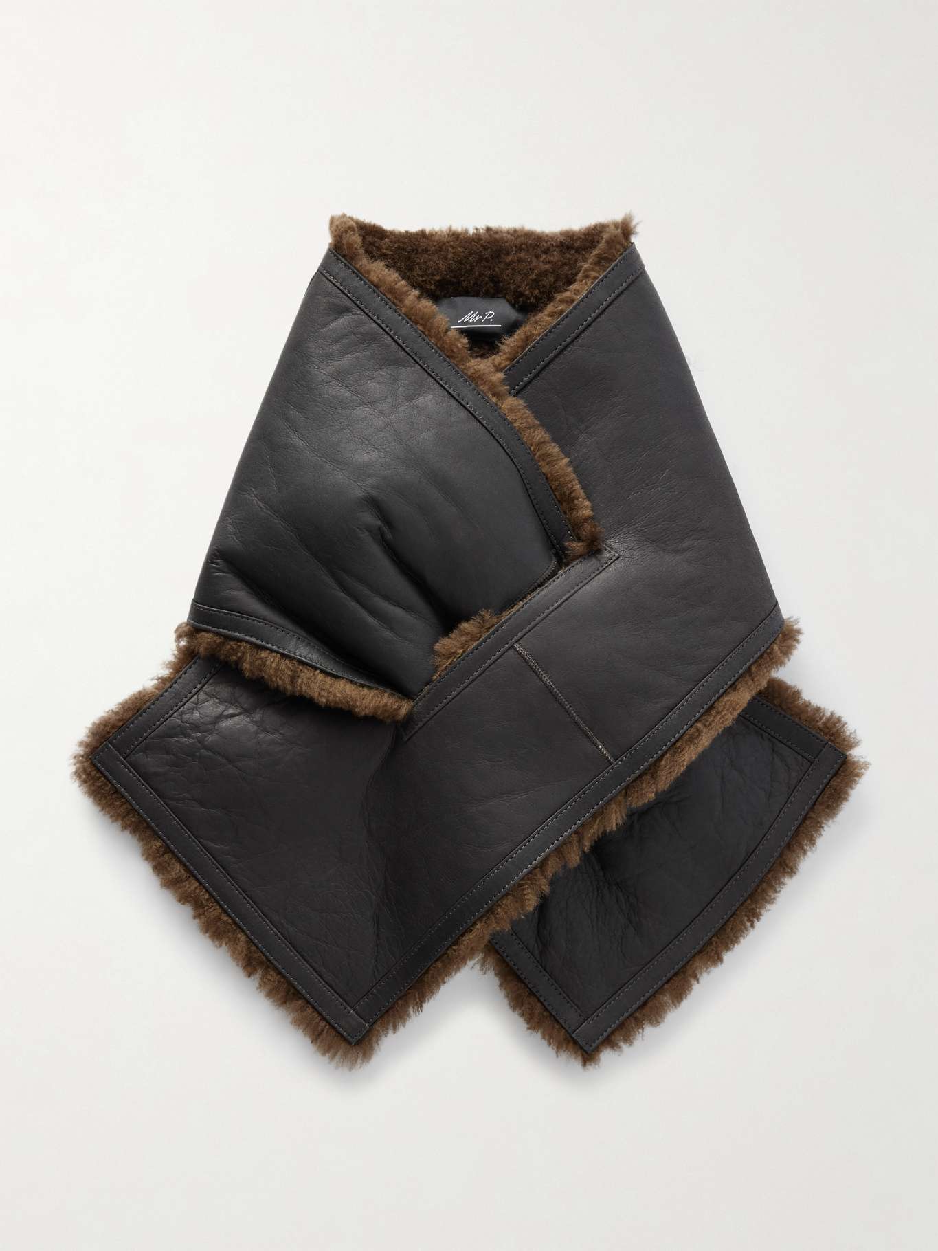 DESIGNED BY MR PORTER. The term 'cosy' gets thrown around a lot, especially when it comes to plush sweaters and coats - Mr P.'s scarf is the real deal. It's crafted from substantial, naturally insulating shearling and specially designed to thread through itself for a comfortable fit.