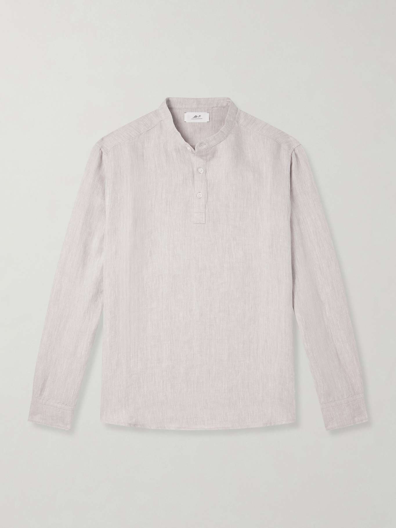 DESIGNED BY MR PORTER. Mr P.'s shirt is a warm-weather staple. It's cut from breathable linen in a relaxed profile and topped with a kaftan-style collar and short buttoned placket.