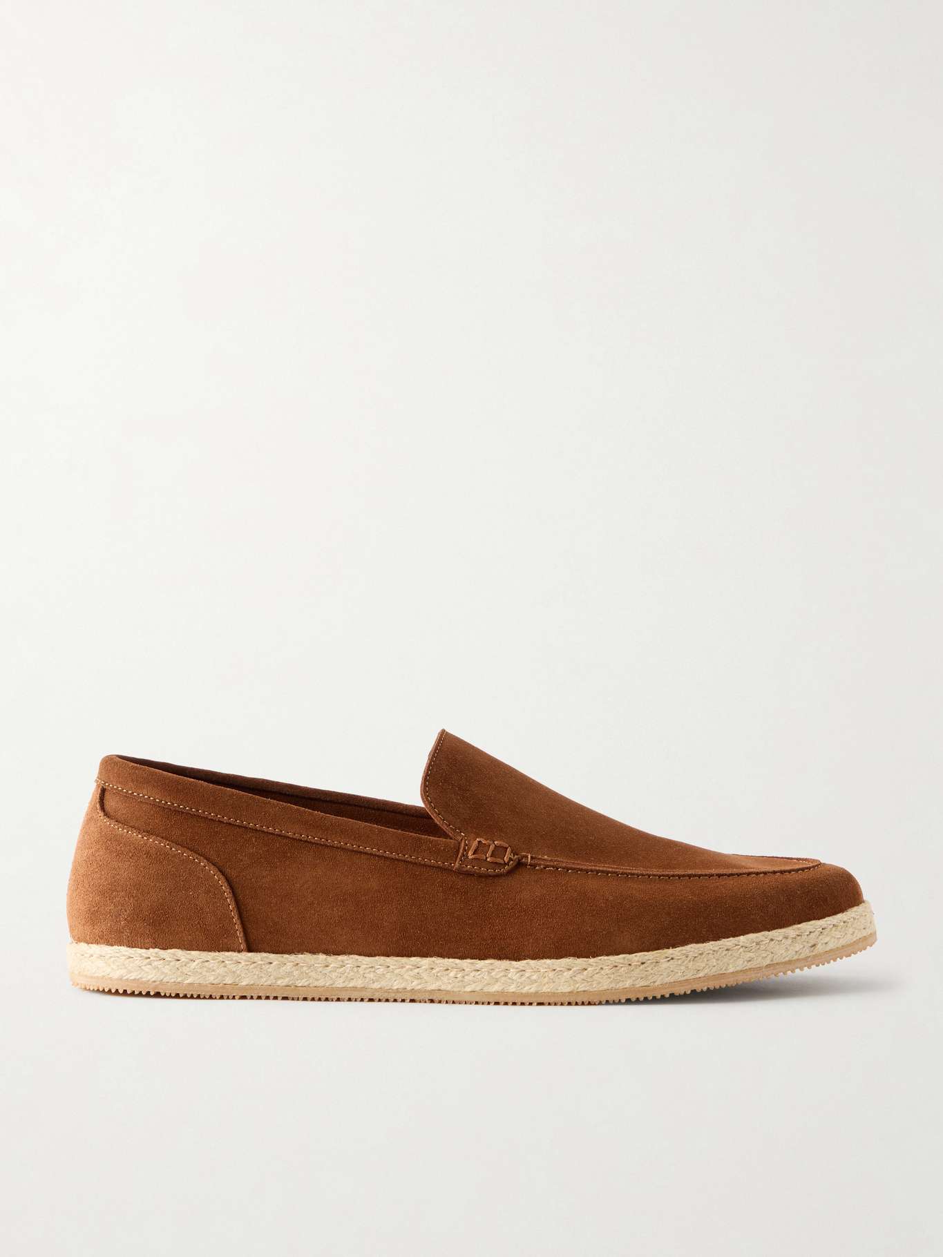 DESIGNED BY MR PORTER. Made in Italy from full-grain calf suede, Mr P.'s espadrilles have a soft, supple feel and are left unlined for barefoot comfort. A flat-profile Vibram ‘Ecostep’ rubber sole keeps them lightweight, while traditional jute braiding completes the design.