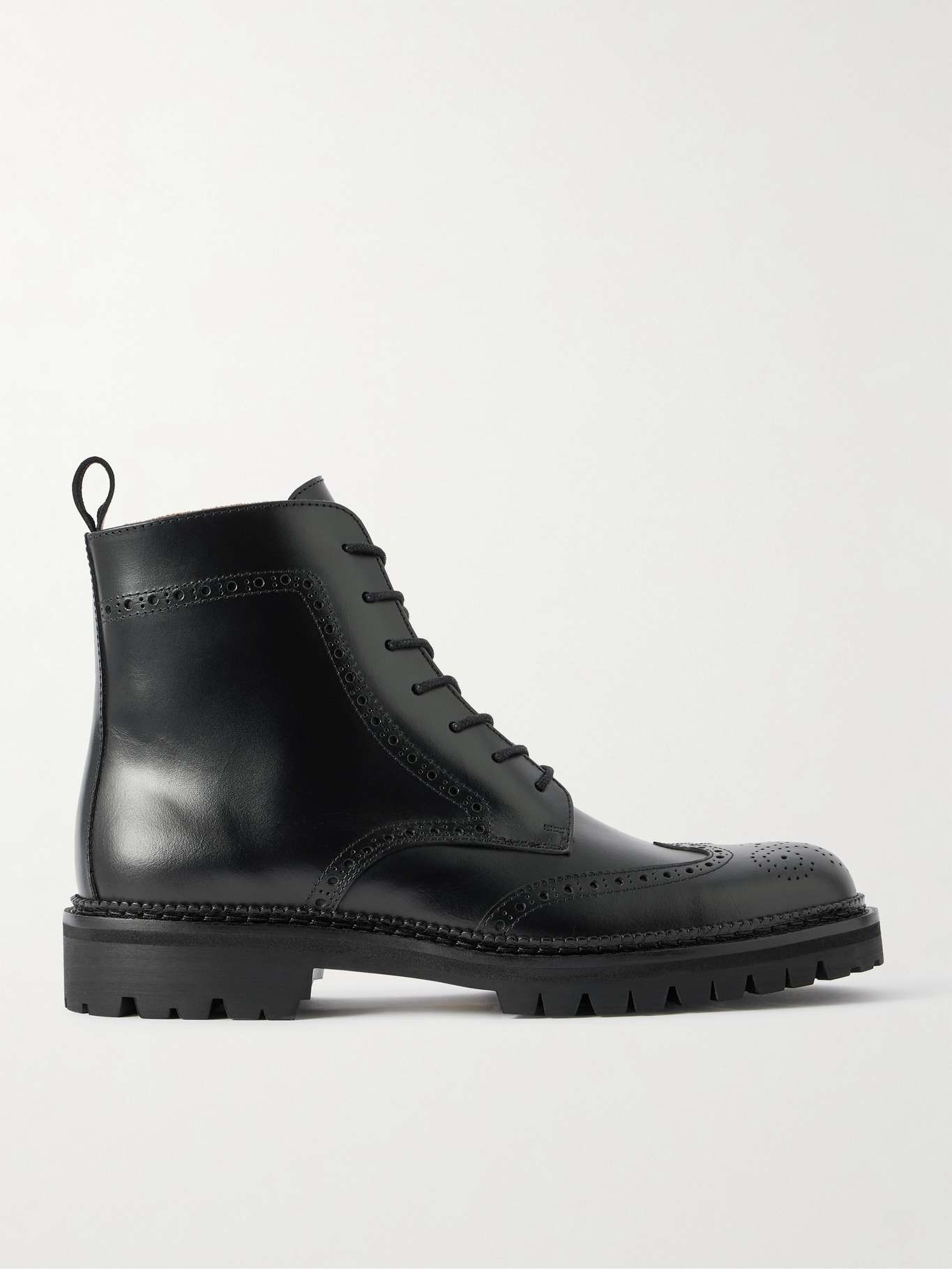 DESIGNED BY MR PORTER. Brogues were favoured by land-workers in the 19th century, though now they're more common in a semi-formal environment. Inspired by traditional pairs, Mr P.'s boots are made from waxed-leather and set on Vibram 'Commando' soles. Take them to the cobbler when the treads eventually wear down.