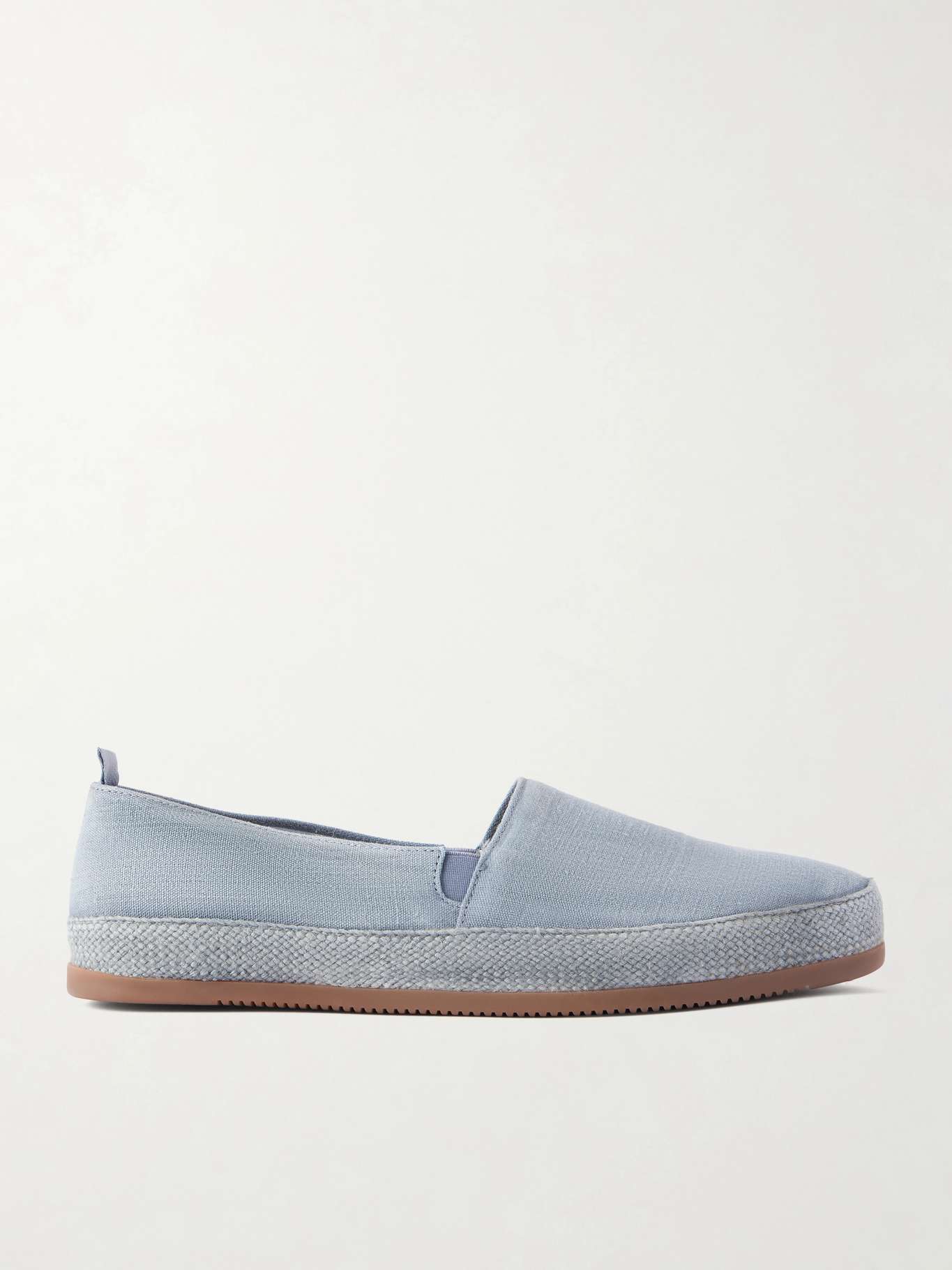 Warm days call for a little readiness, and Mulo's espadrilles fit the bill. Handmade from breathable linen, they're piece-dyed so the braided jute trim matches the upper, then stitched onto a cushioned footbed and rubber sole; elasticated side inserts ensure an easy slip-on fit. Try them with tonal linen.