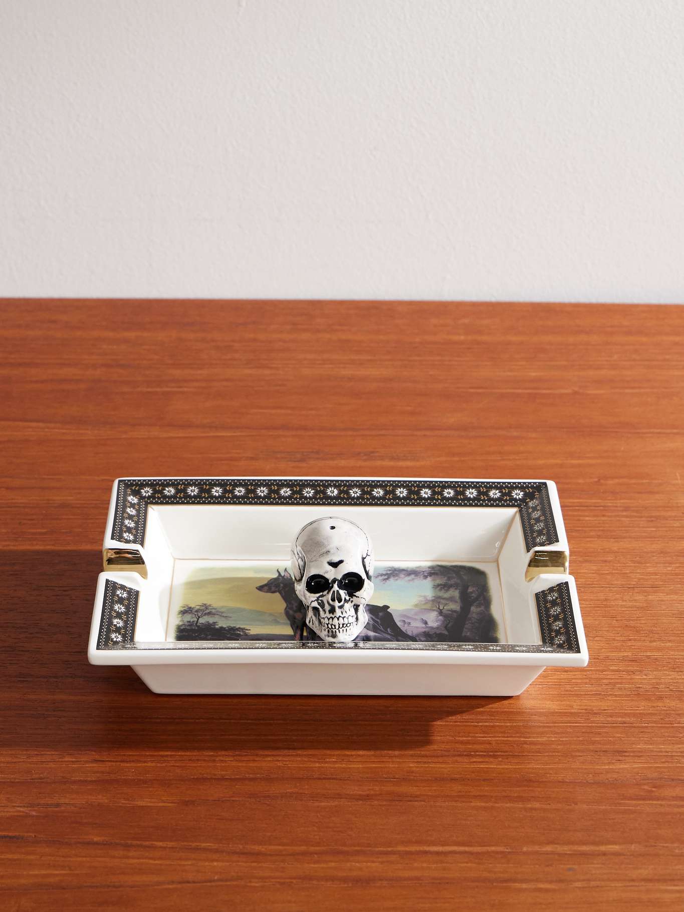 Crafted in Japan from premium ceramic, Neighborhood's incense tray is painted with a Doberman, decorative details and gold-tone accents. The skull-shaped holder and base can be used separately.
