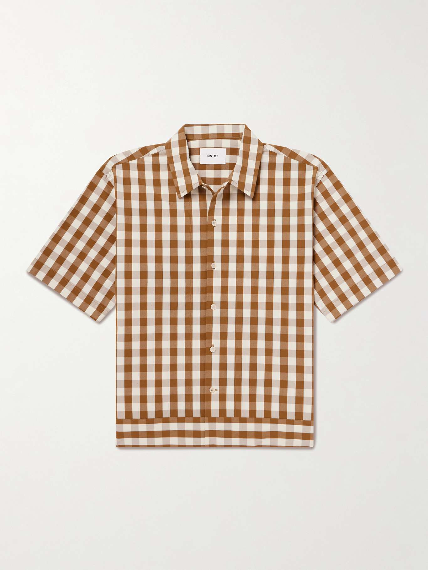 NN07's 'Reed' overshirt is made from thick, durable cotton patterned with classic gingham. Designed for a relaxed fit, it has a neat collar and fastens with tonal buttons. Layer it over a tank or tee.