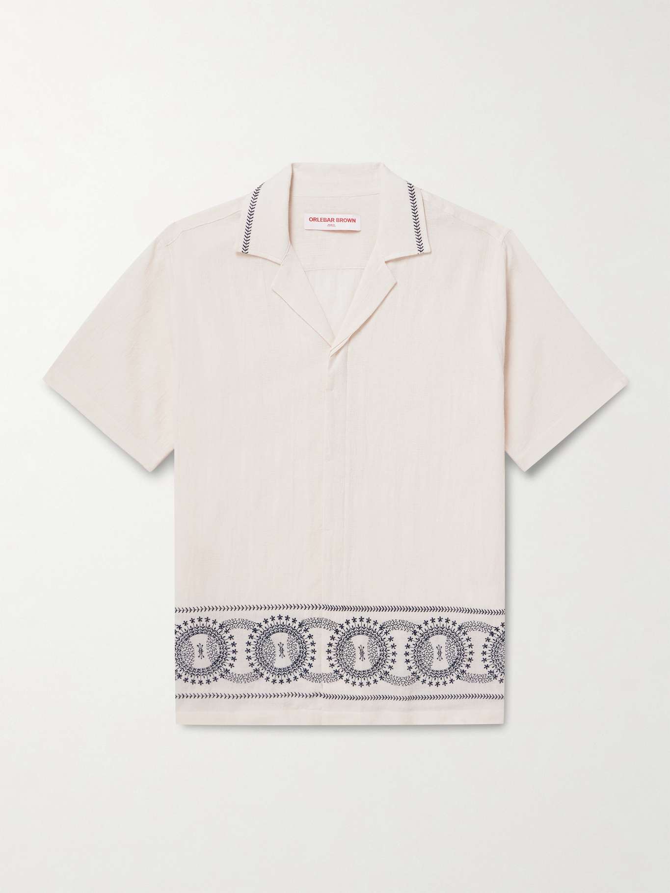 ORLEBAR BROWN Maitan Cirqua Camp-Collar Embroidered Cotton-Gauze Shirt