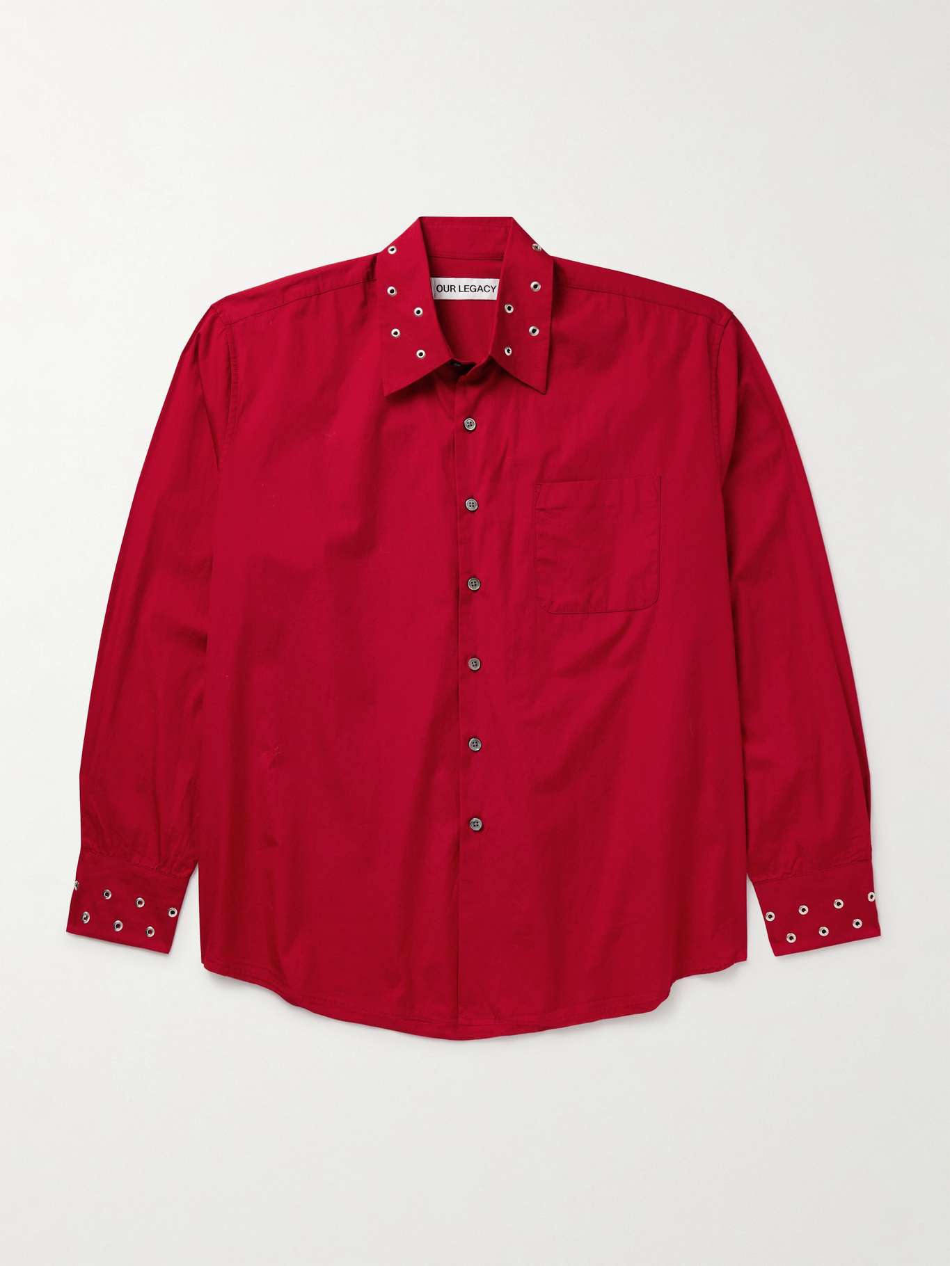 Our Legacy updates its 'Above' shirt in fresh colours and fabrics each season. This version is cut for a slightly oversized fit from Italian cotton-poplin and traced with silver-tone grommets along the collar and cuffs.