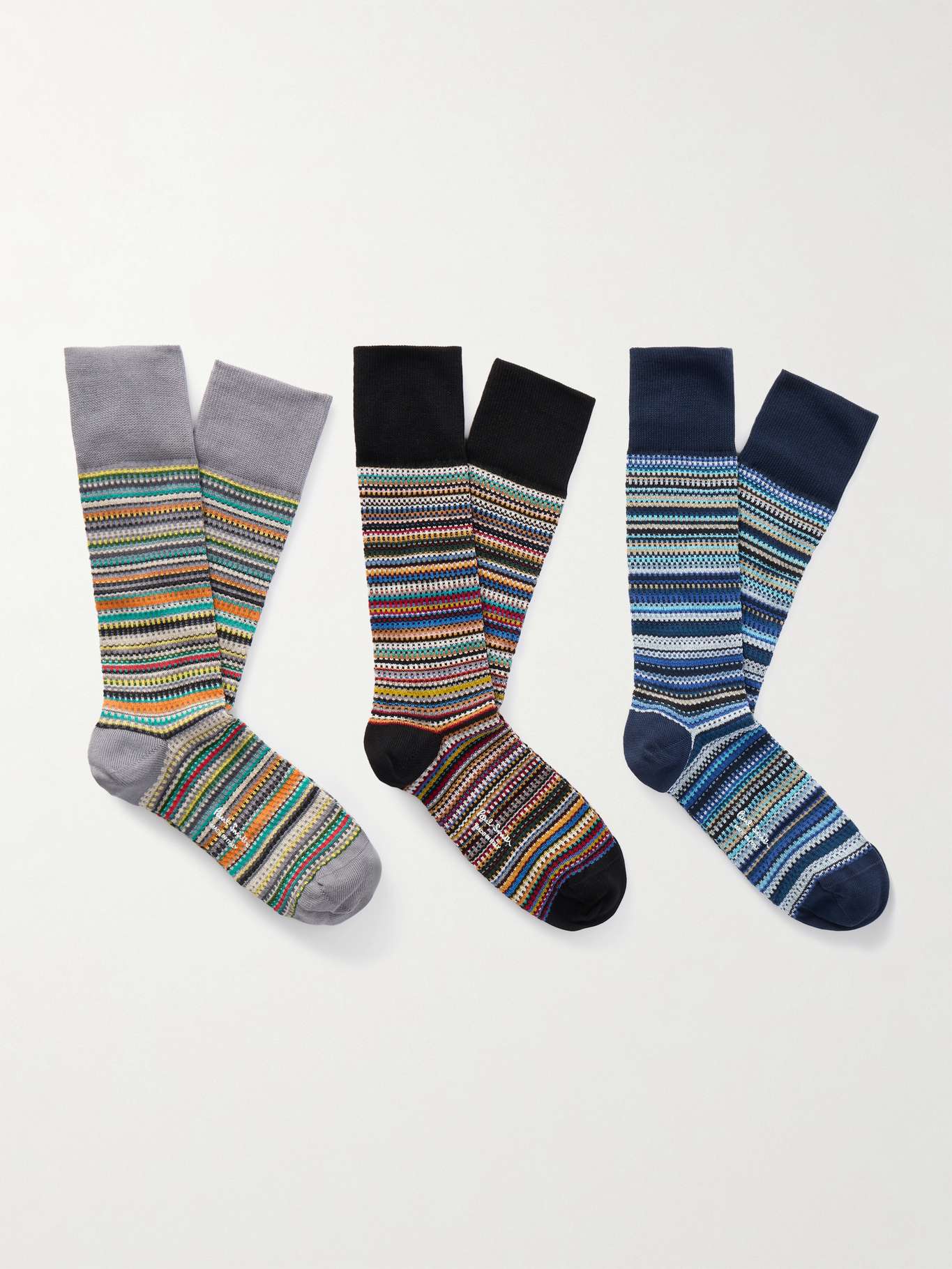 PAUL SMITH Three-Pack Striped Cotton-Blend Socks