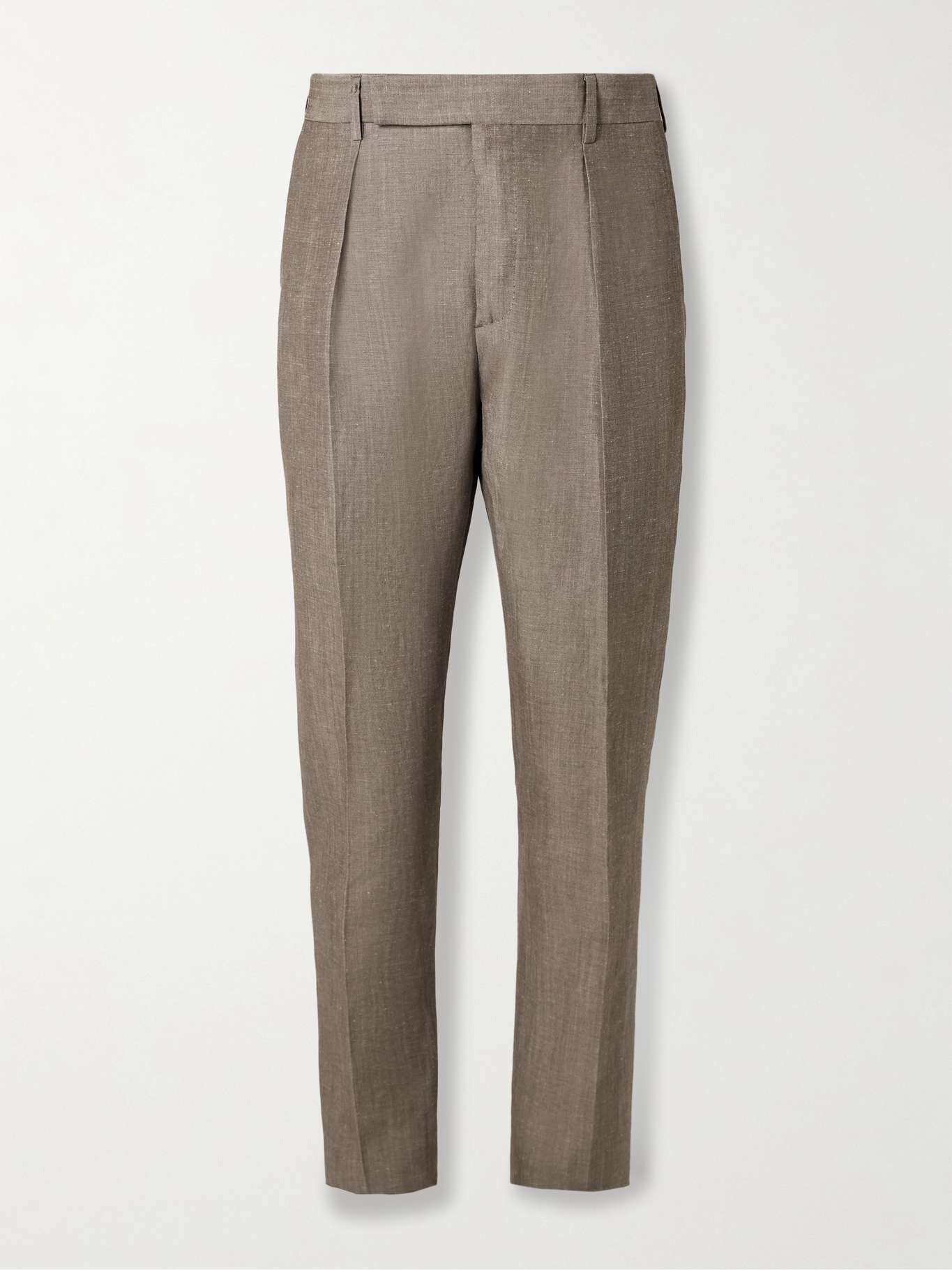 PAUL SMITH Straight-Leg Pleated Linen and Wool-Blend Suit Trousers