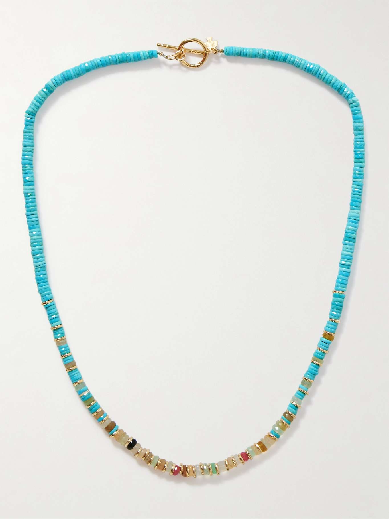 PEYOTE BIRD Sotogrande Gold-Plated, Turquoise and Chalcedony Necklace