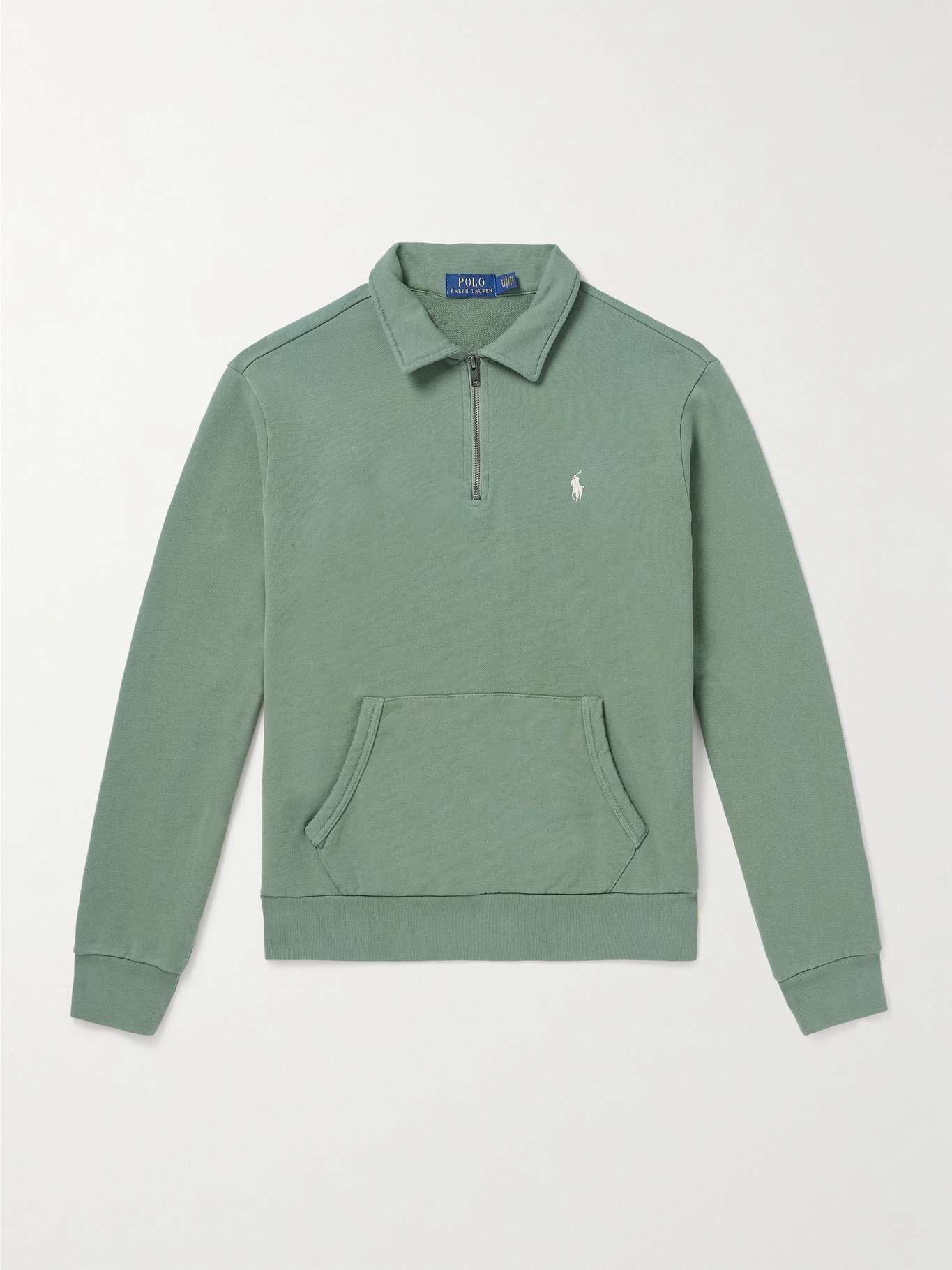 POLO RALPH LAUREN Logo-Embroidered Cotton-Jersey Half-Zip Sweatshirt