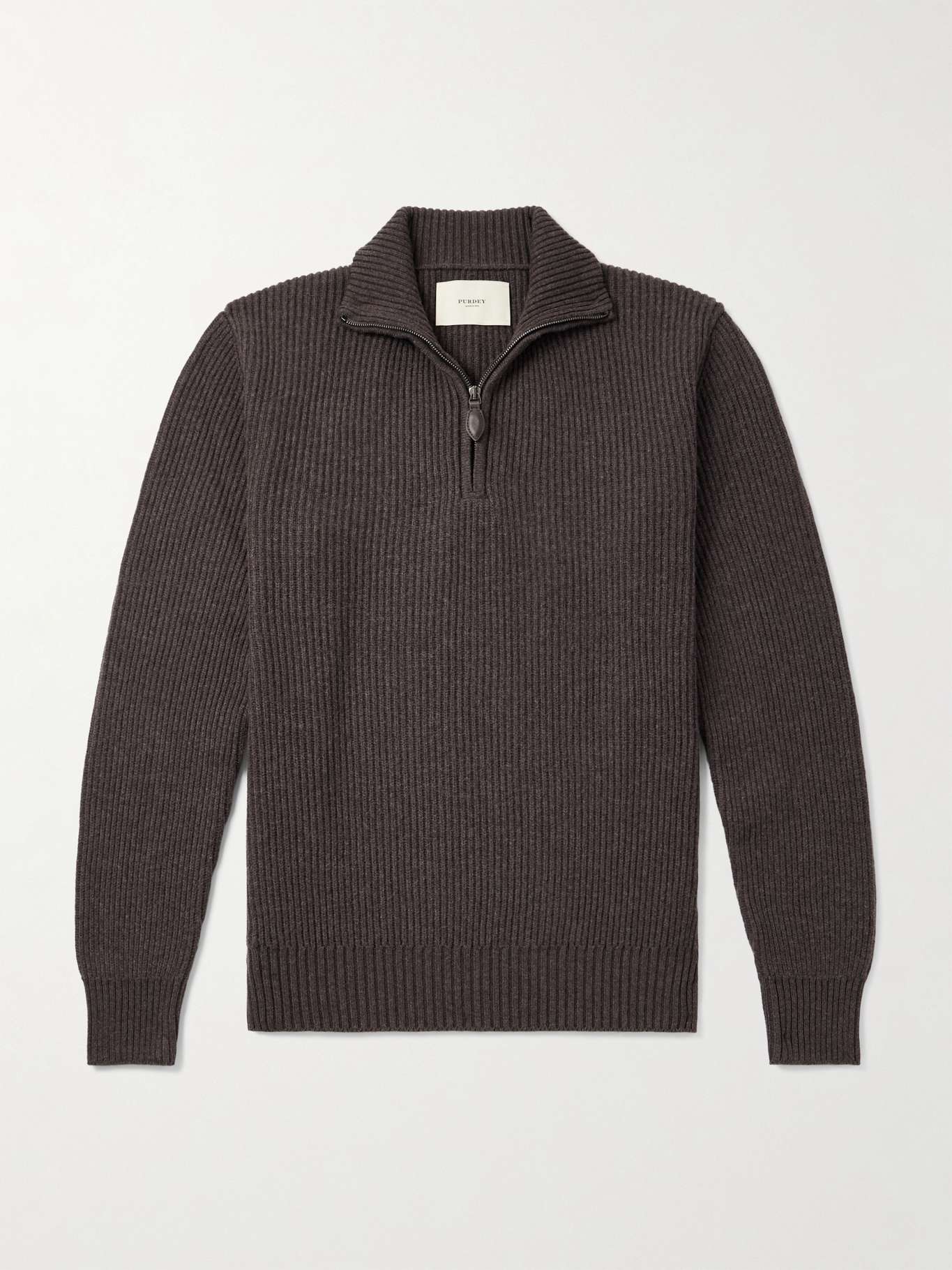 PURDEY Clifford Ribbed Wool and Cashmere-Blend Half-Zip Sweater