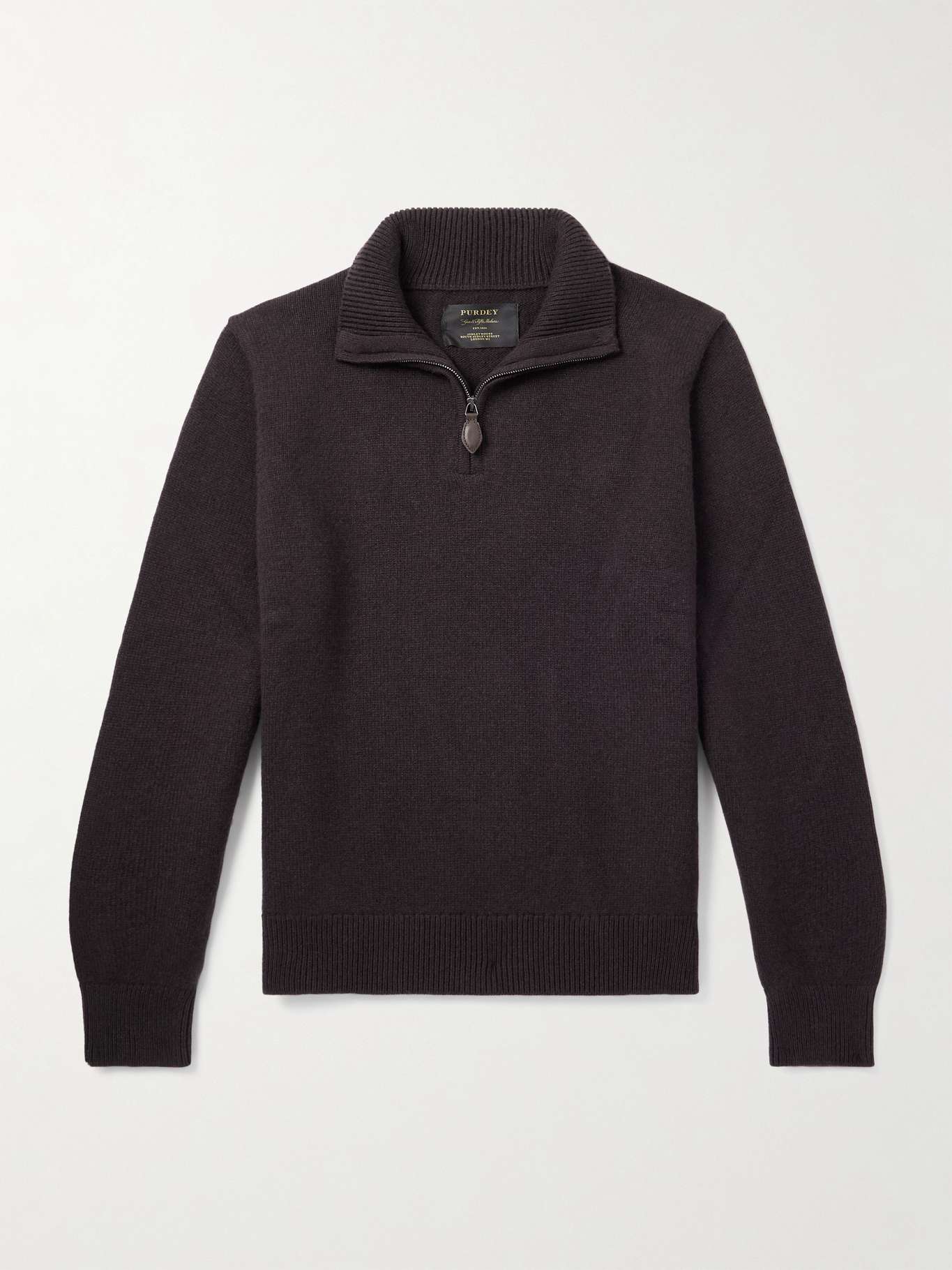 Purdey's 'Hertford' sweater is knitted from pure wool and has a half-zip placket with a tonal leather pull tab. Ribbed trims lock in warmth and temper the relaxed fit.